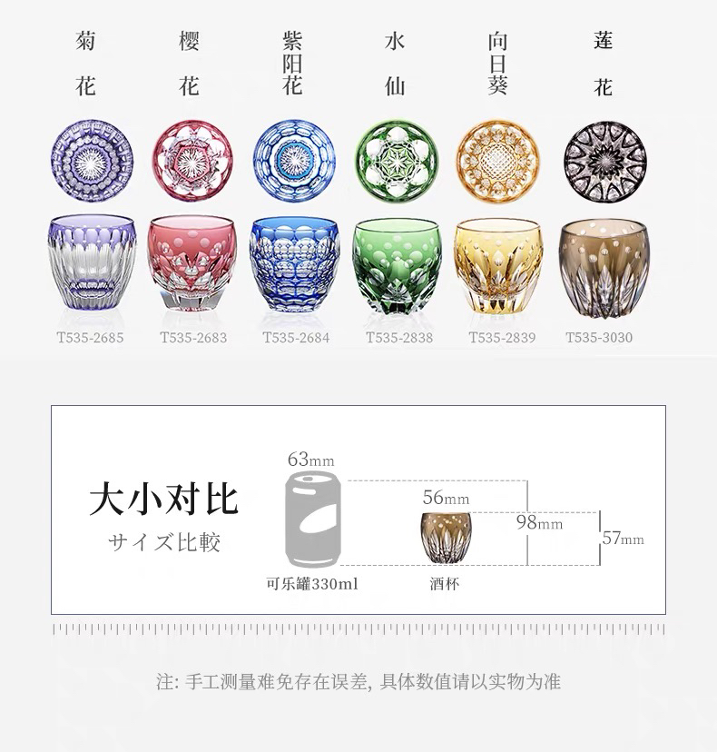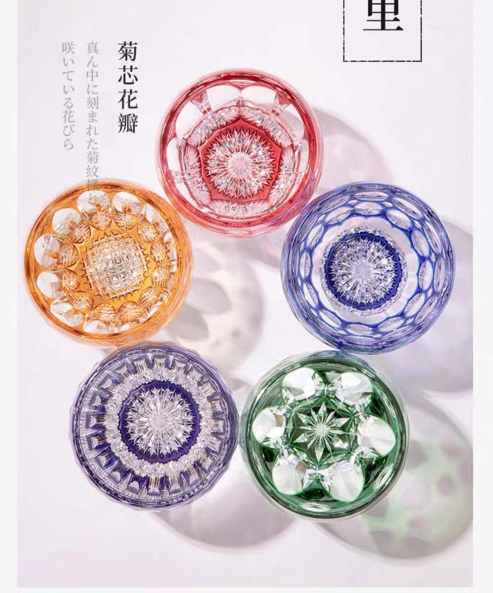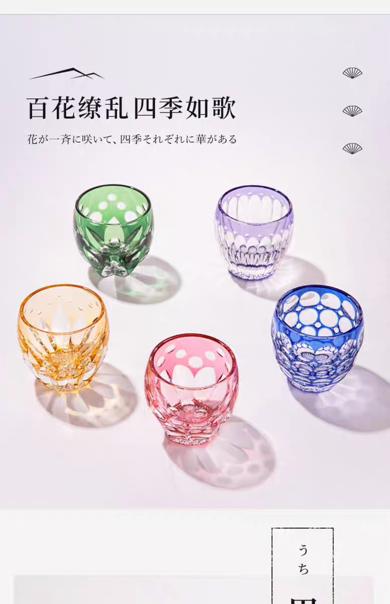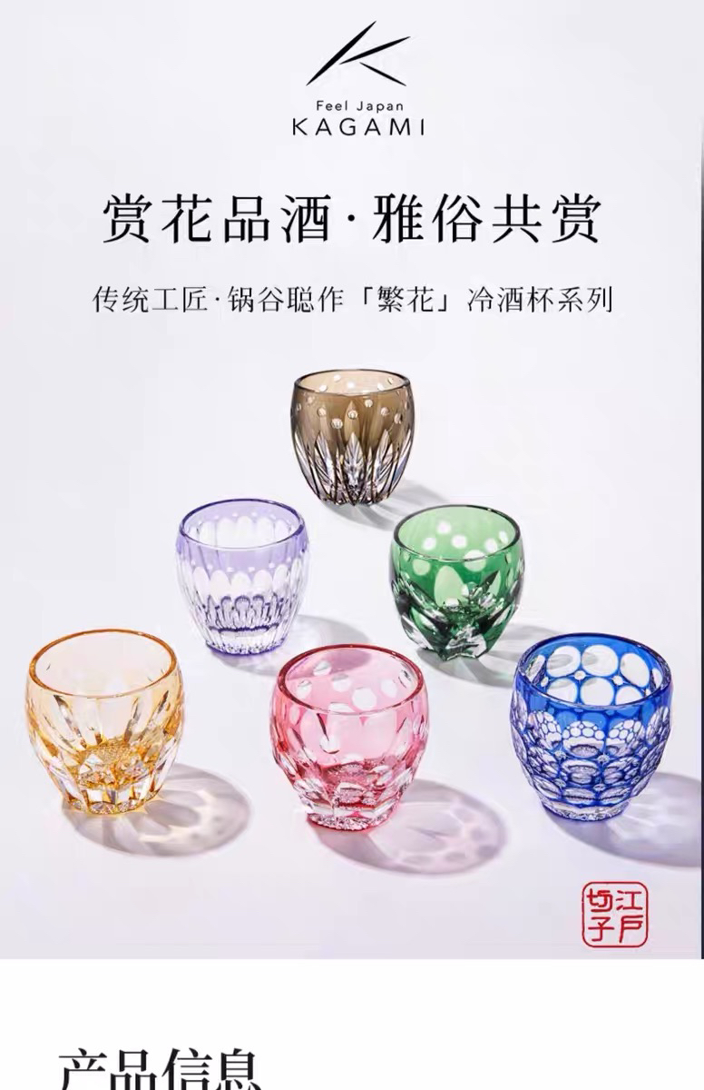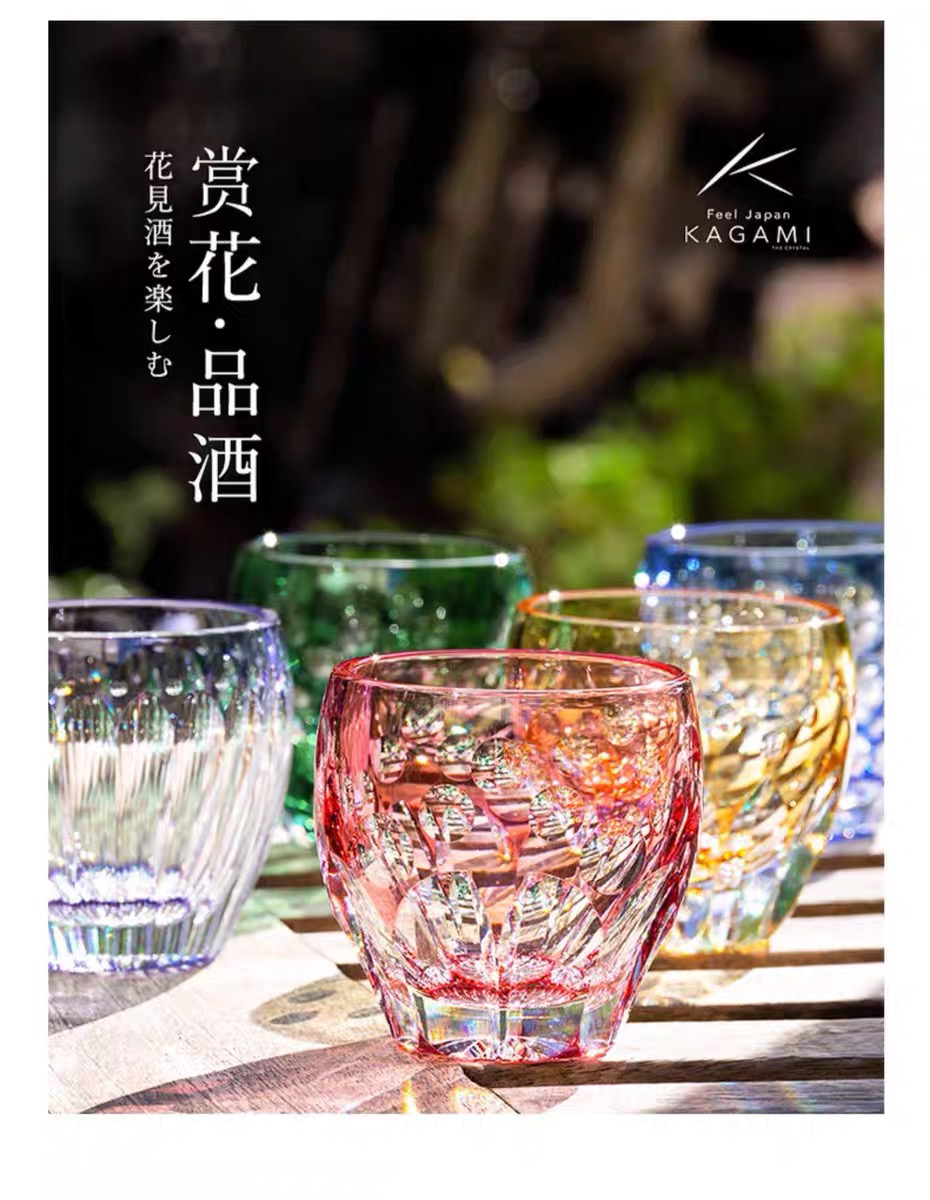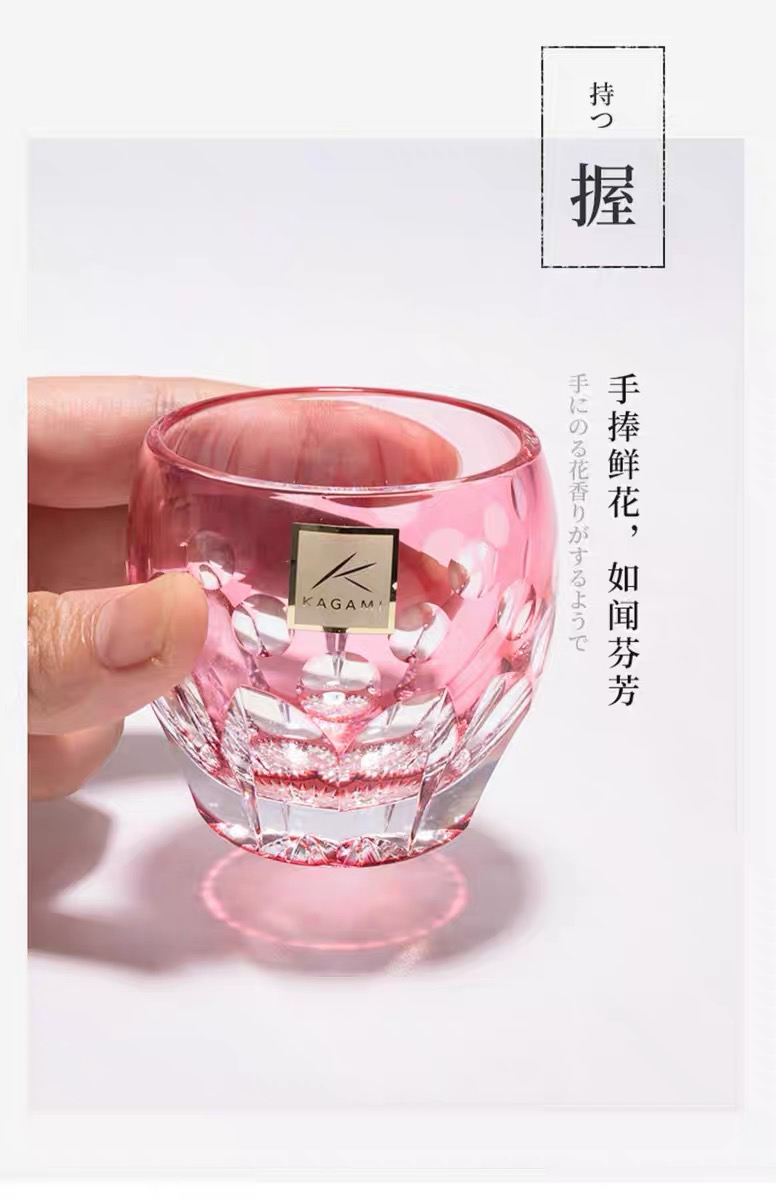 KAGAMI江户切子水晶玻璃杯子樱花白酒杯清酒杯
