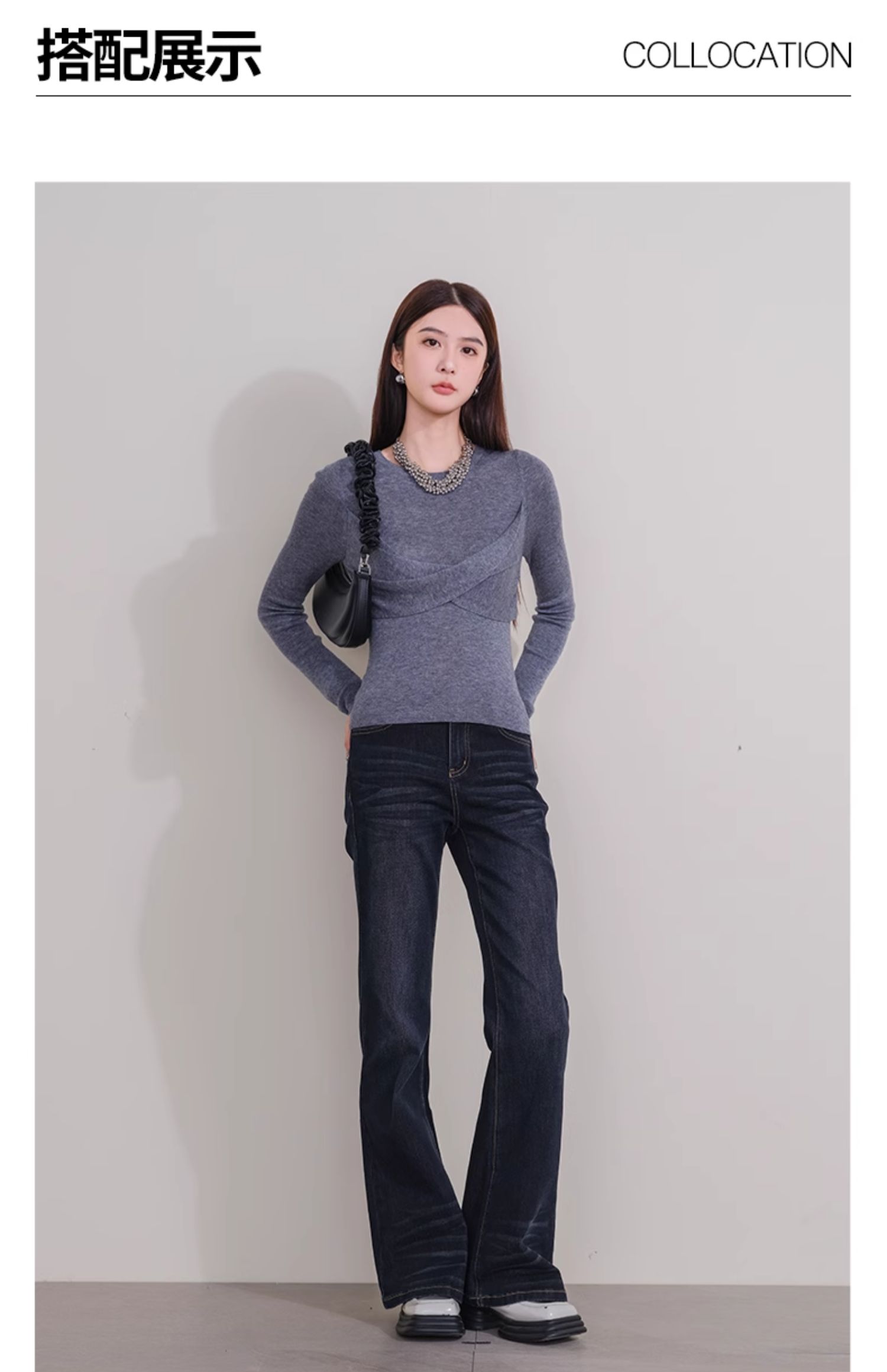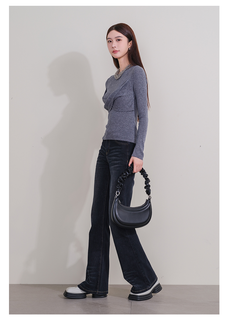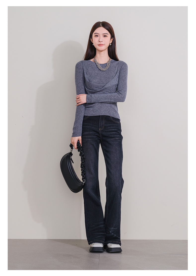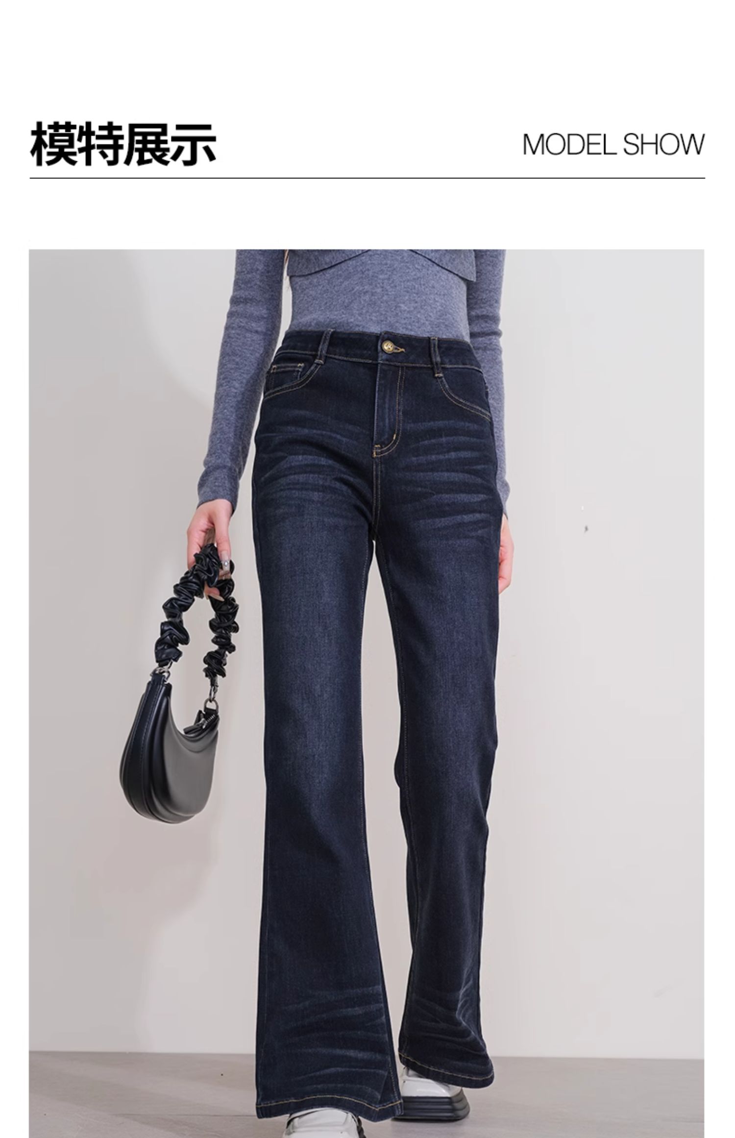 oldcolour冬季新款深蓝色复古气质高腰百搭微喇牛仔裤女P431104A1