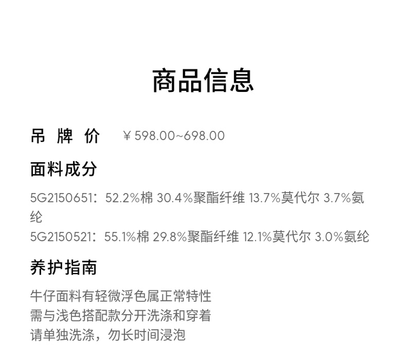 【商场同款】麦檬春秋牛仔长裤5G2150651