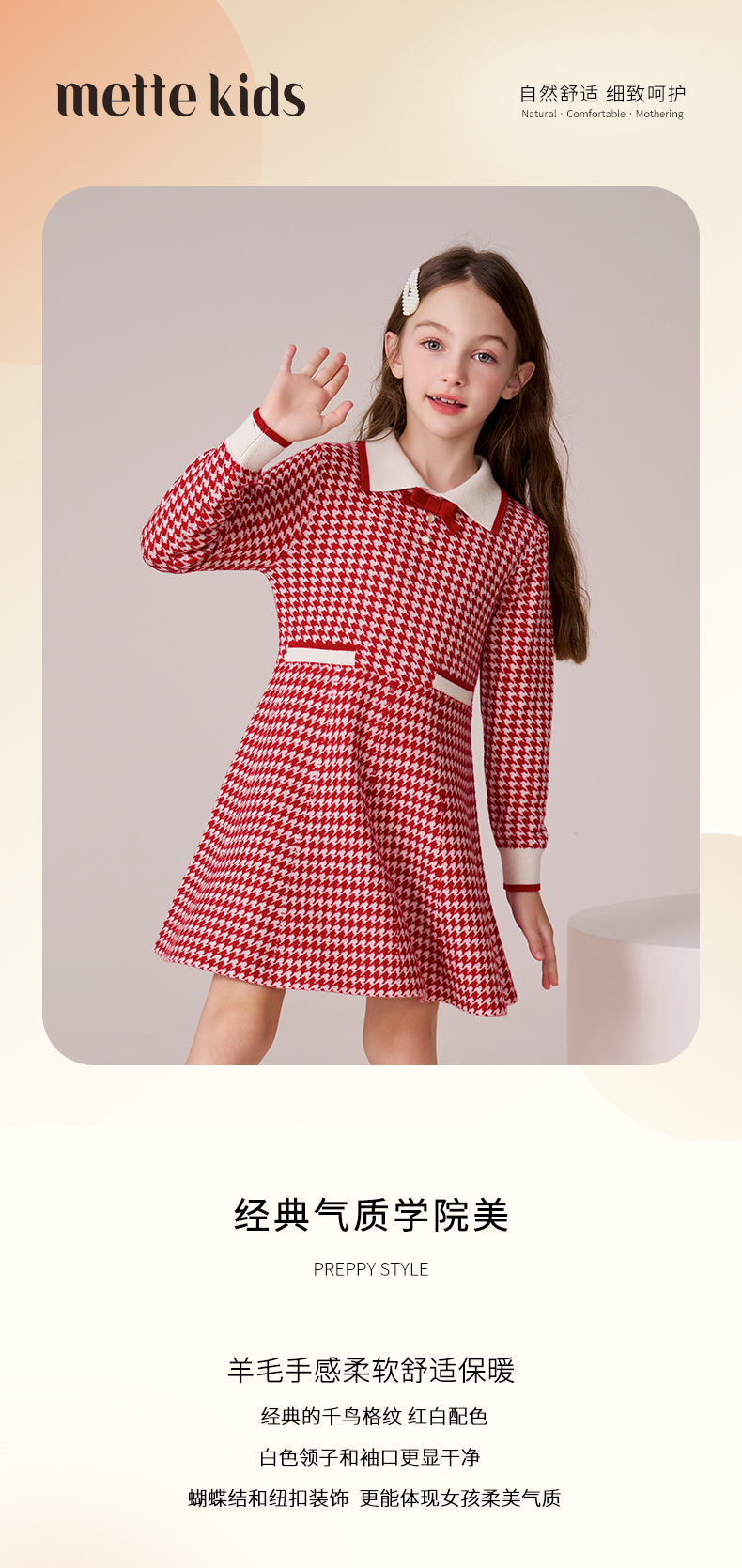 METTE羊绒世家童装中大童男女100%山羊绒衫20秋时尚圆领绞花针织保暖毛衣