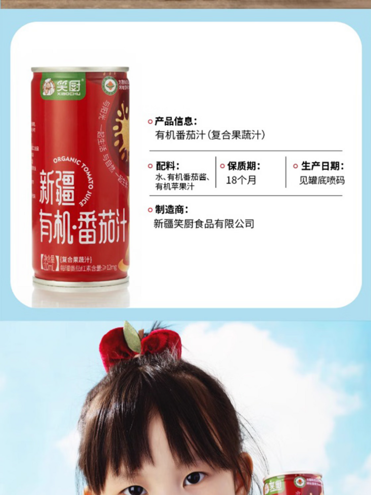 笑厨有机番茄汁(复合果蔬汁)210ml*12瓶