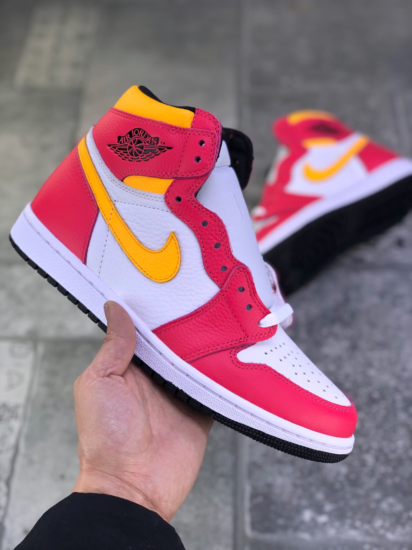 Air Jordan 1 High OG “Light Fusion Red”红黄糖果 鞋面采用大面积白色