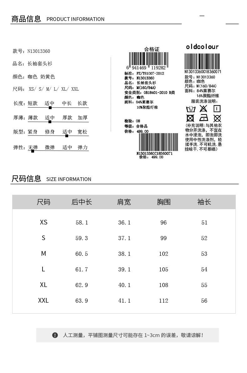 oldcolour秋季时尚百搭长袖套头衫女N13013360