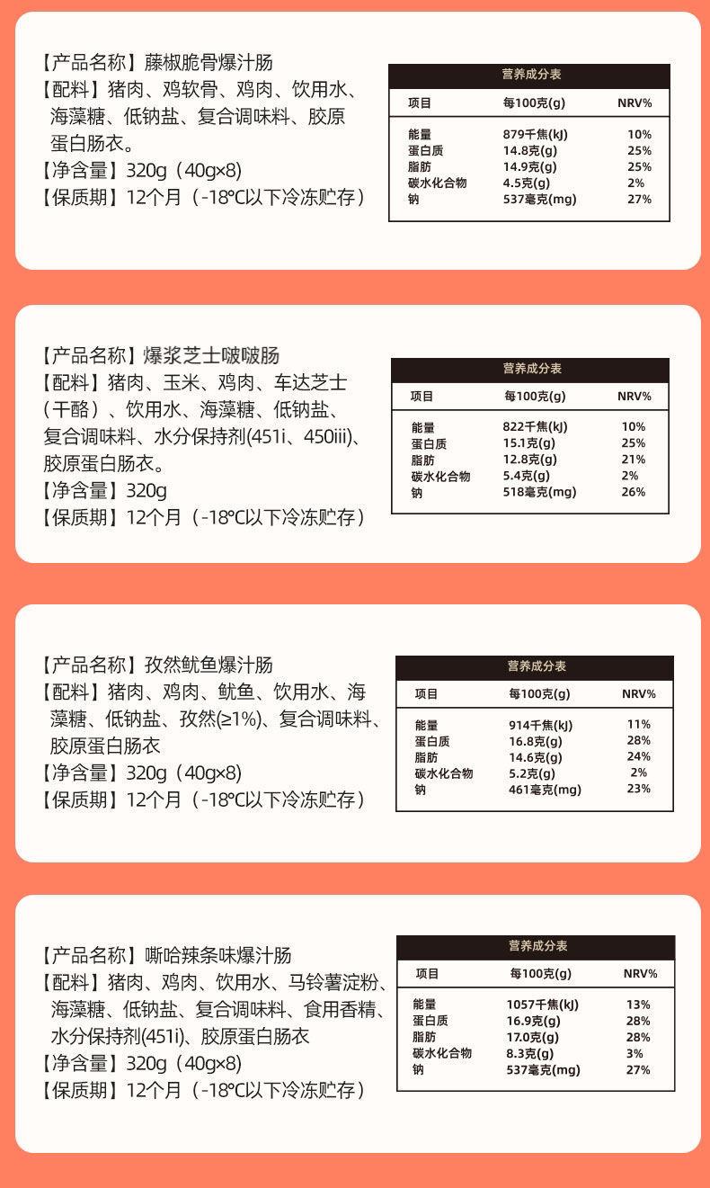 芝士味:含肉量≧83% 芝士含量≧8%
