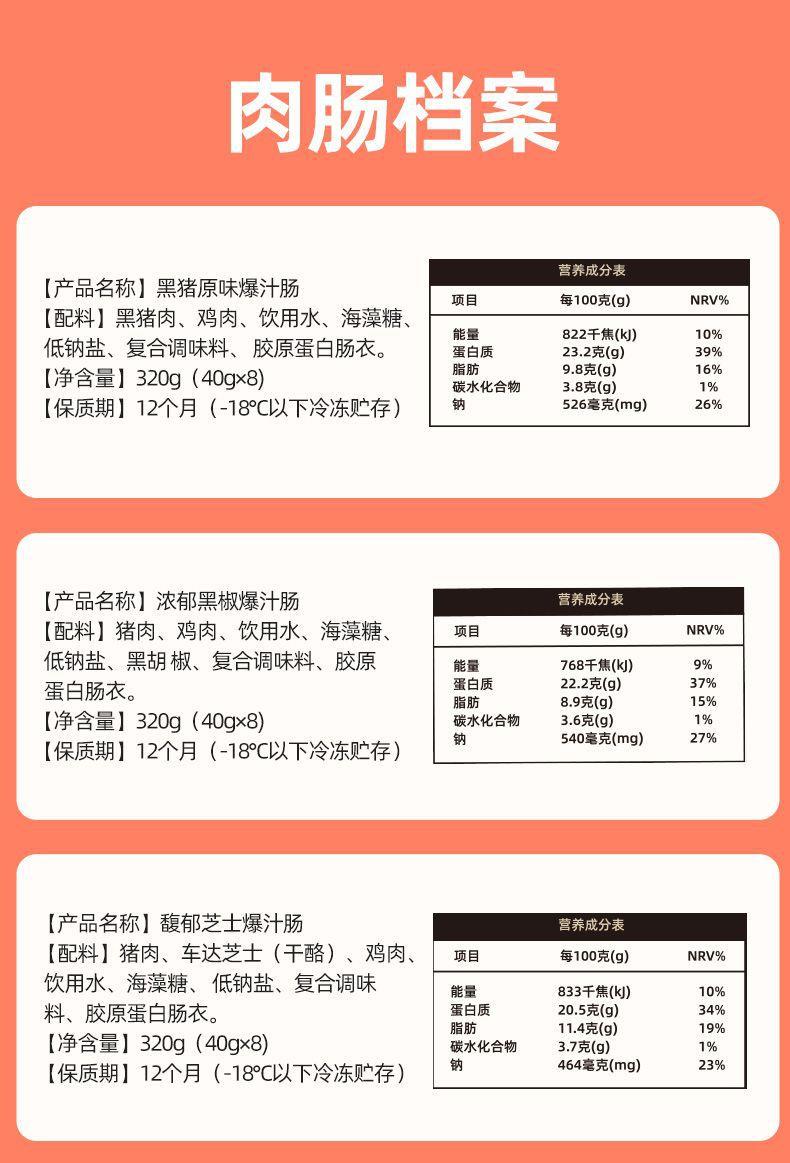 (奶香浓郁 一口爆浆)烤肠中加入奶香浓郁进口芝士,切开可以看到明显的芝士粒。加热之后芝士微微融化在肉里,香味浓郁。一口肉肠多重享受,鲜美、绵柔、爆汁、流香四溢。