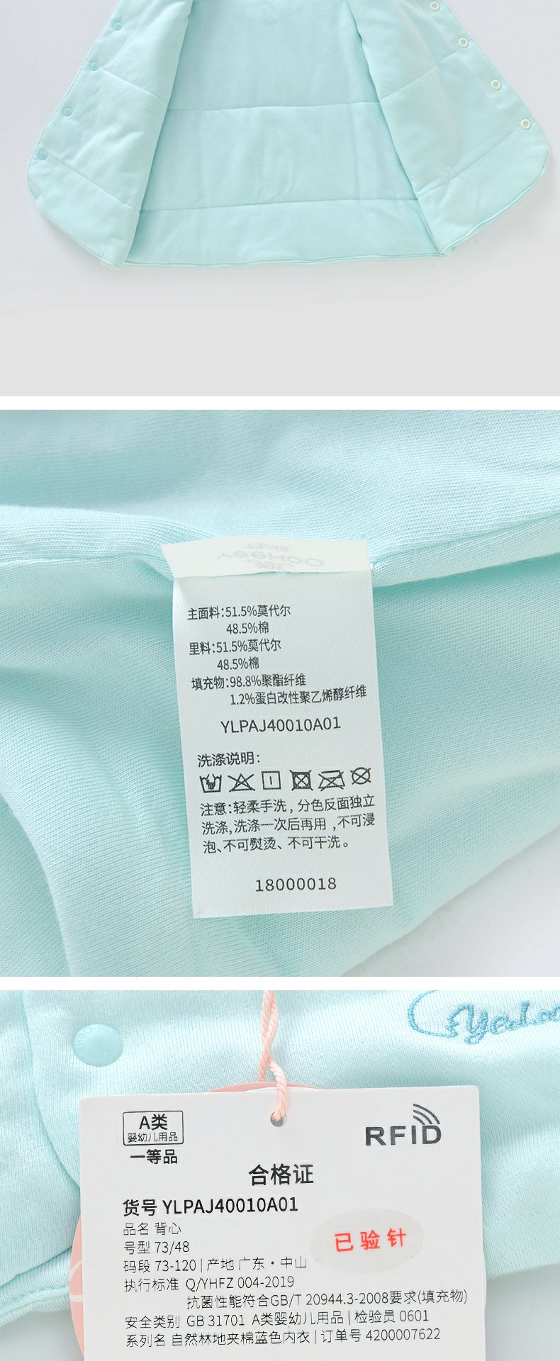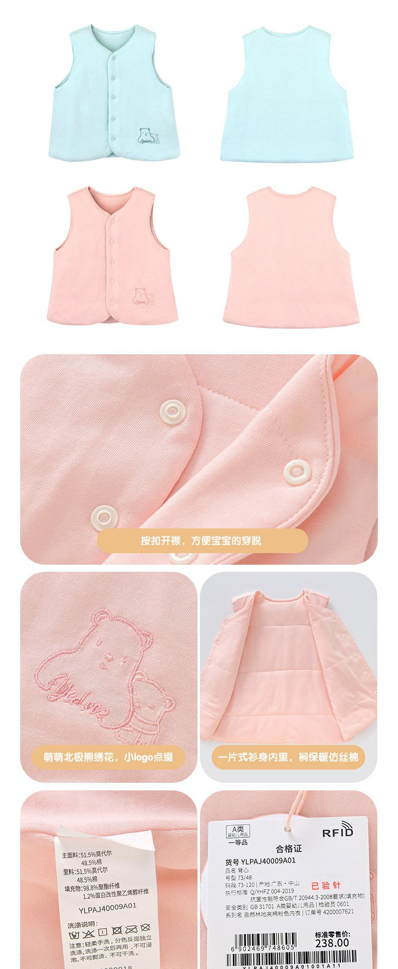 英氏男女宝宝马甲 秋冬新款莫代尔夹棉休闲保暖背心YLPAJ40010A01