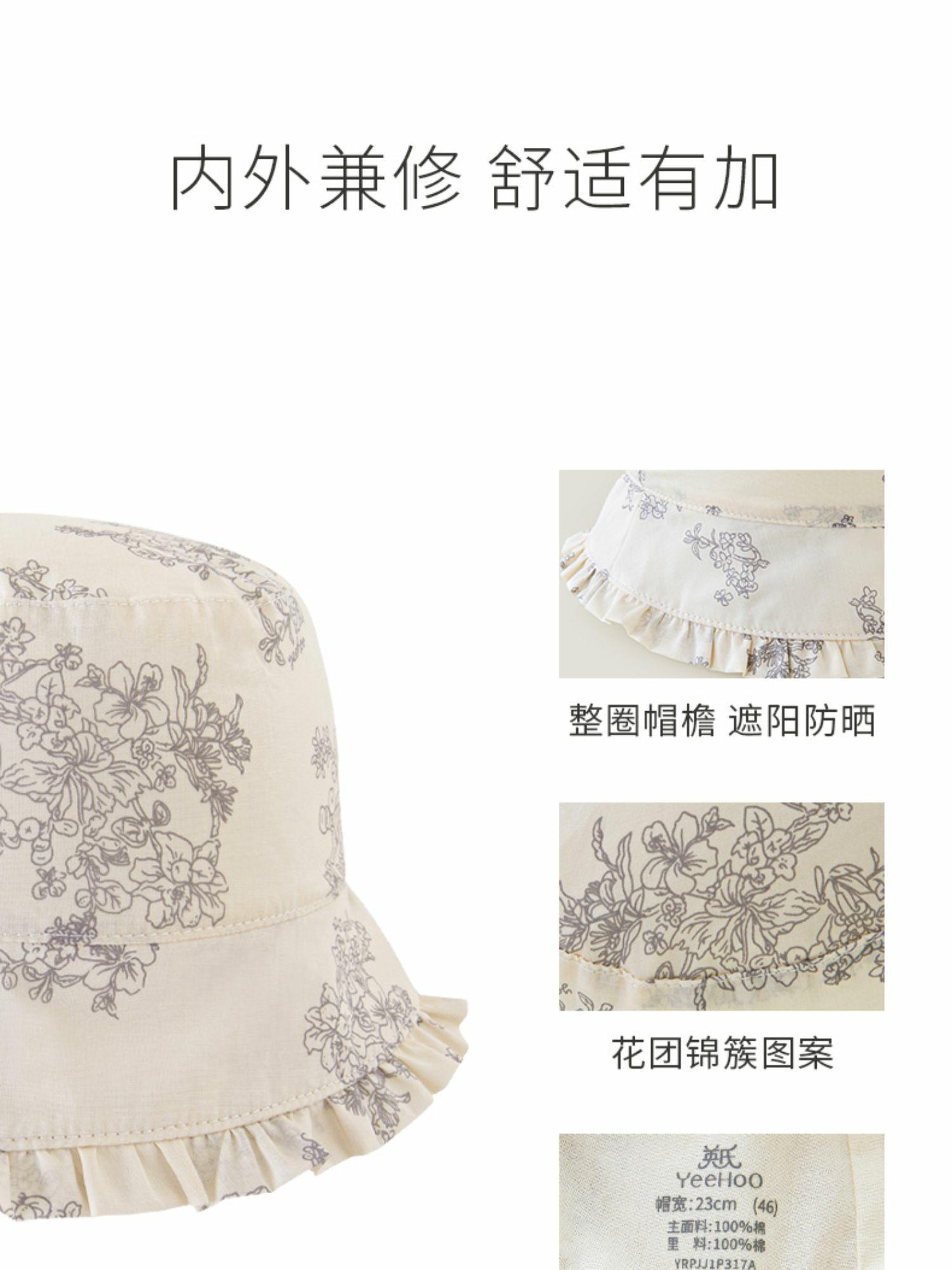 英氏婴儿帽子男童女童防晒遮阳帽渔夫帽2023春夏新季YRPJJ1P317A