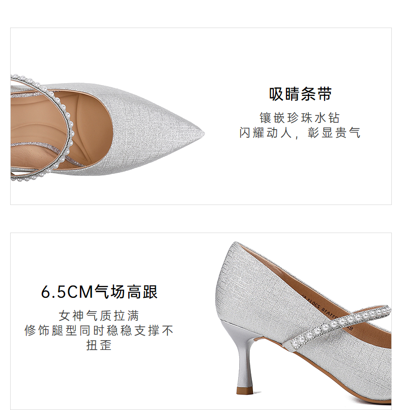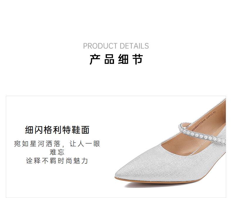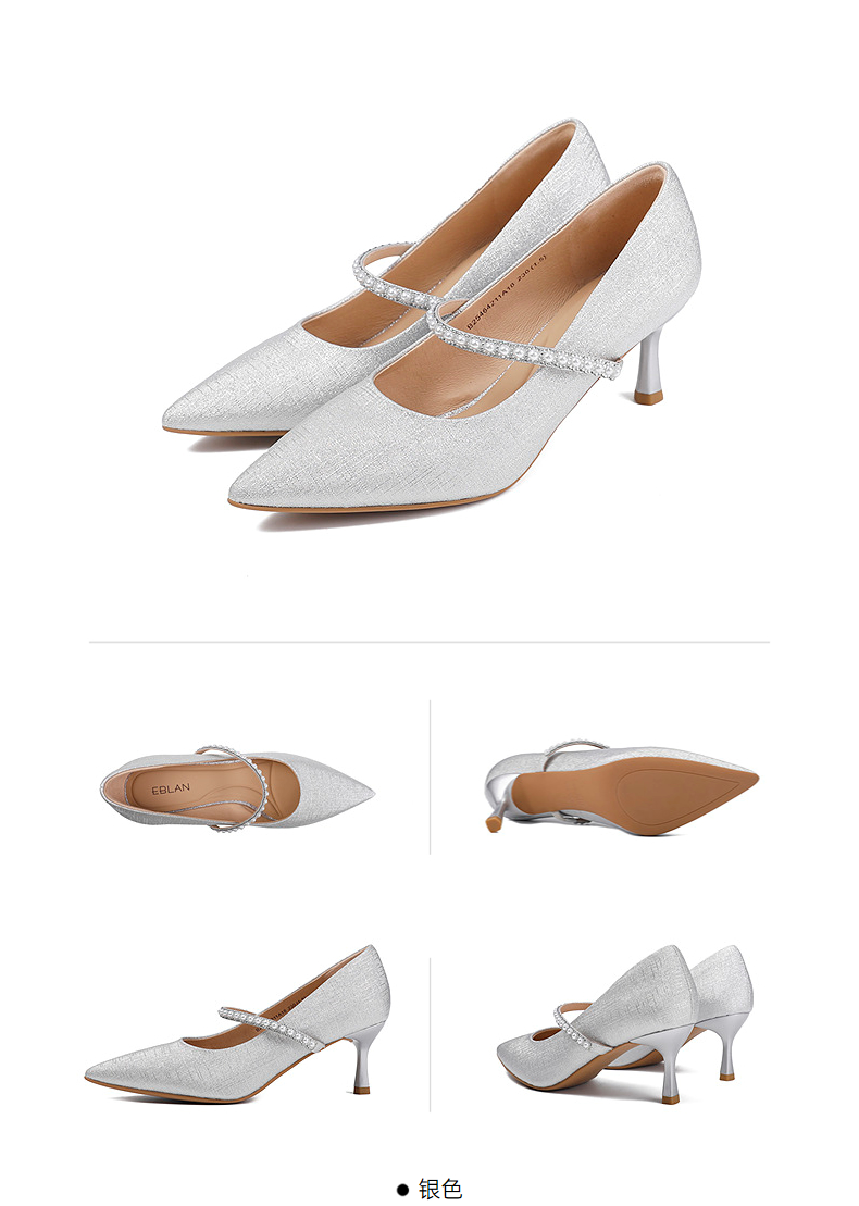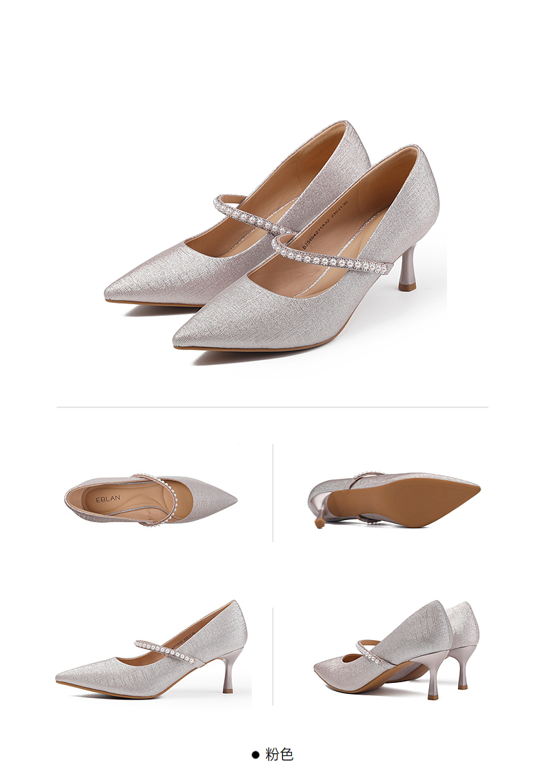 伊伴秋季格利特细闪高跟鞋女神气质增高显瘦单鞋B25464211