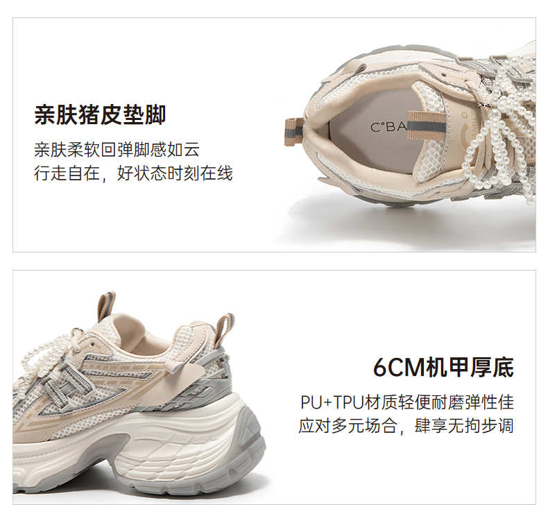 千百度银色珍珠厚底老爹鞋女网面透气增高运动休闲鞋A25308622