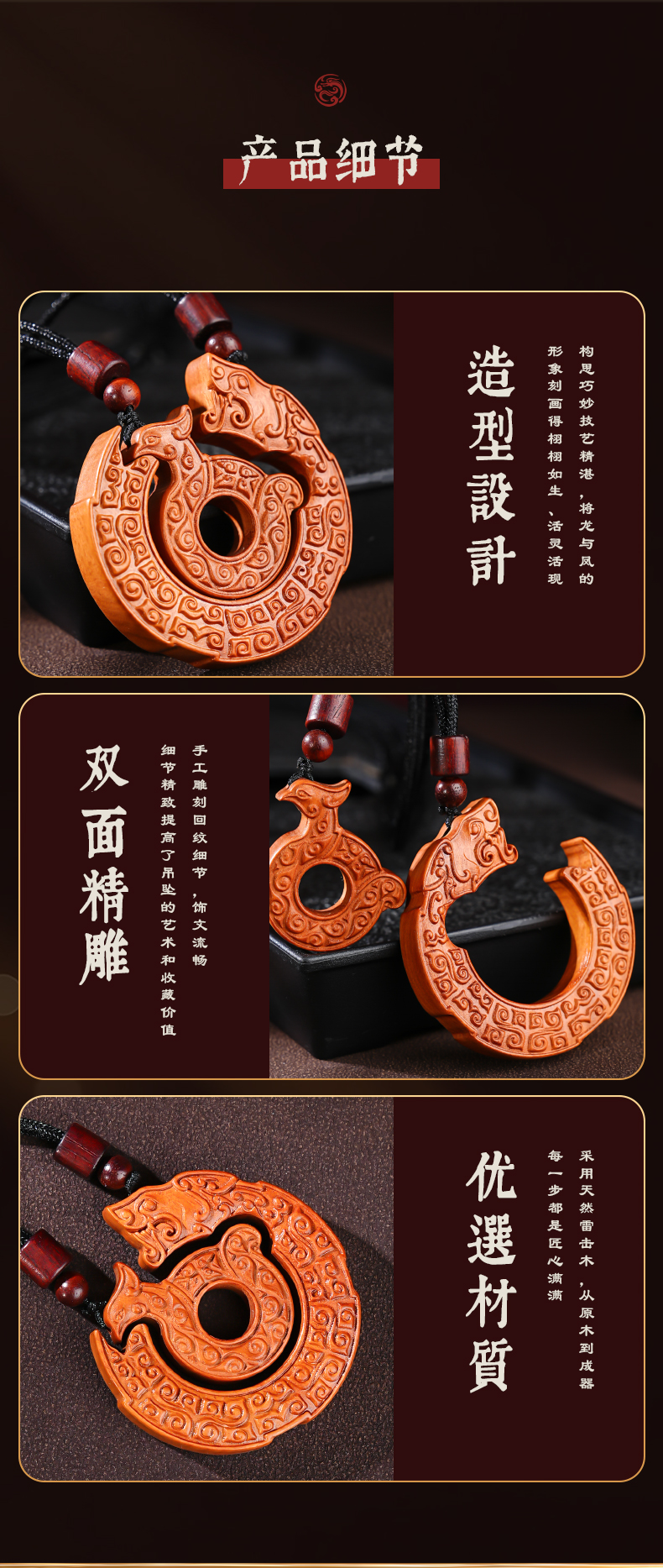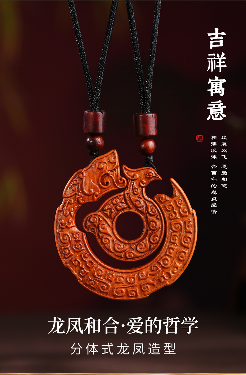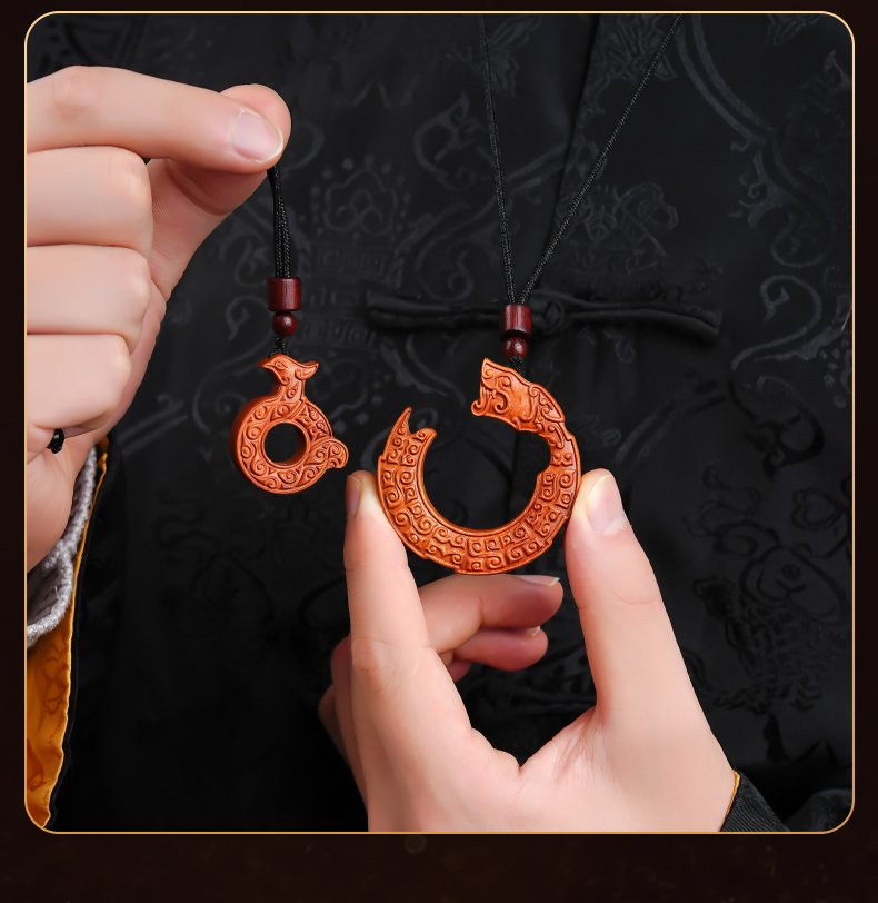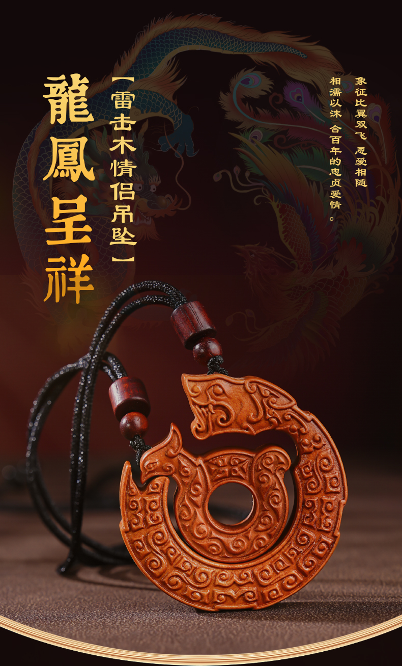 雷击木龙凤平安扣吊坠精工雕刻龙凤呈祥饰品