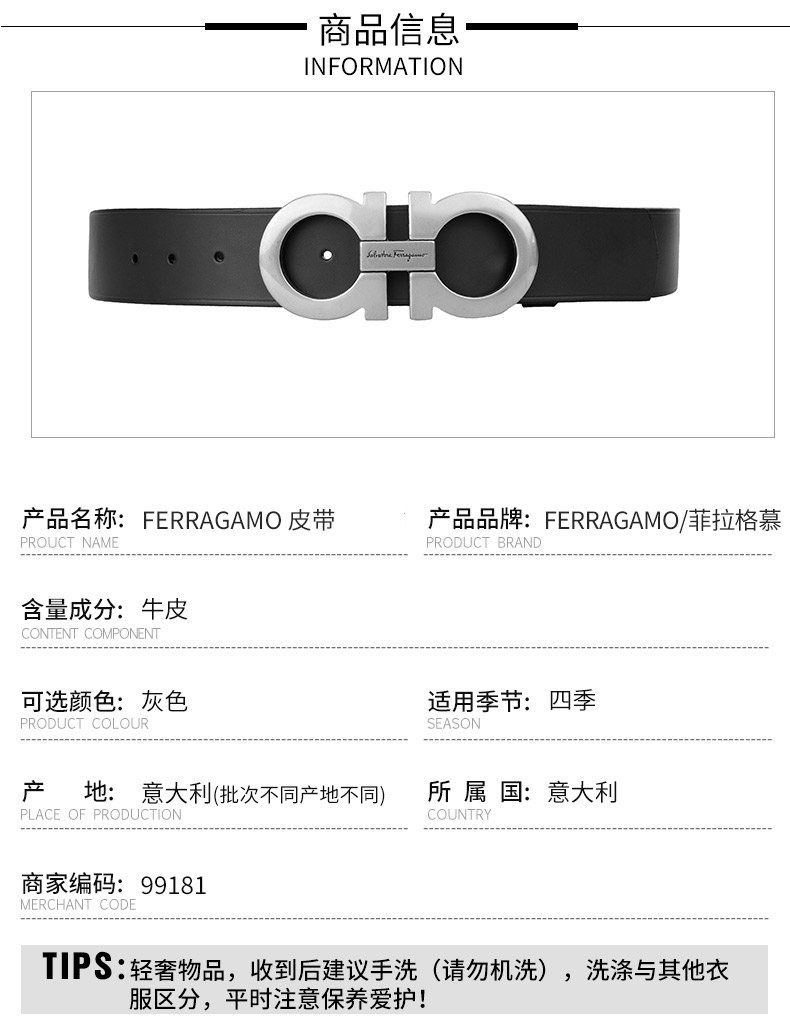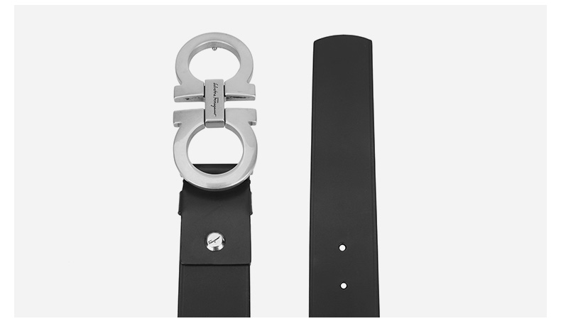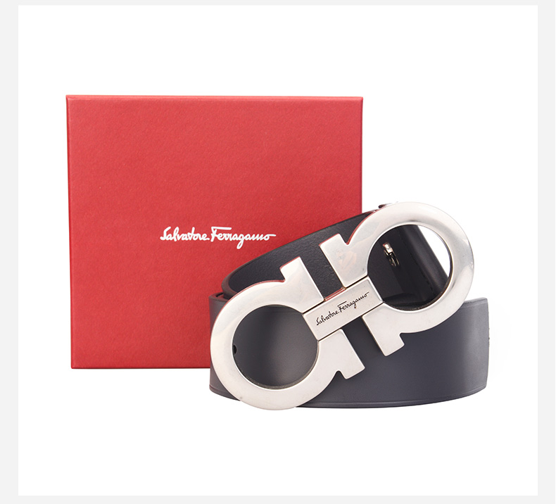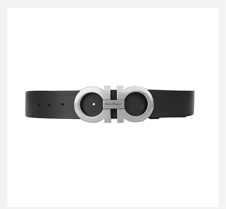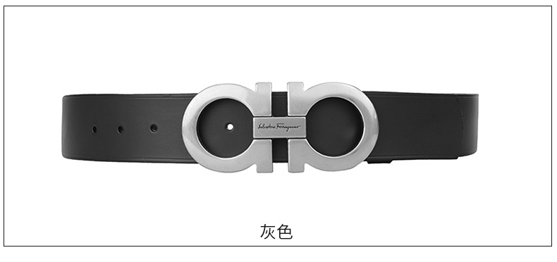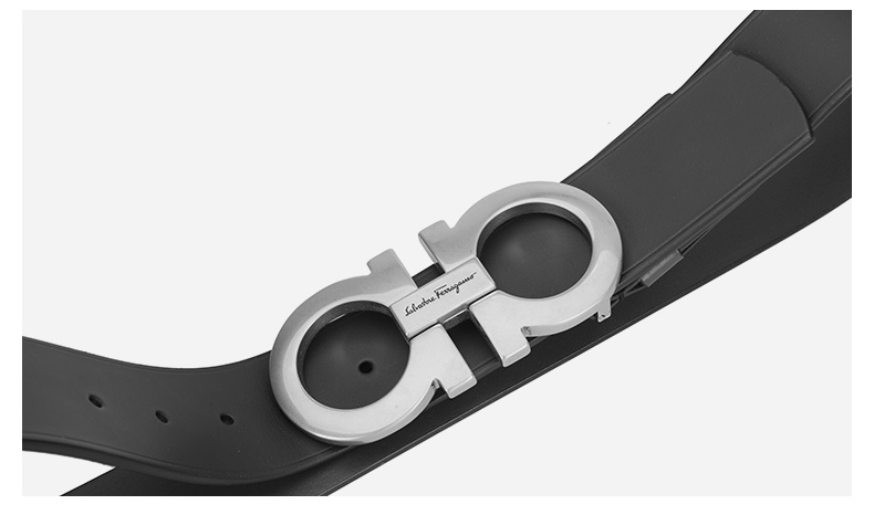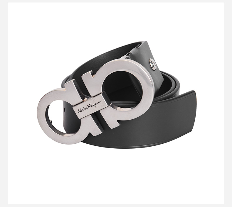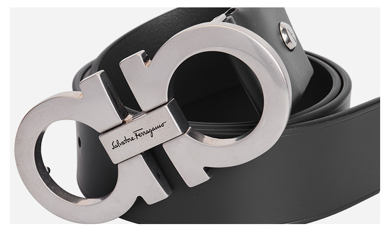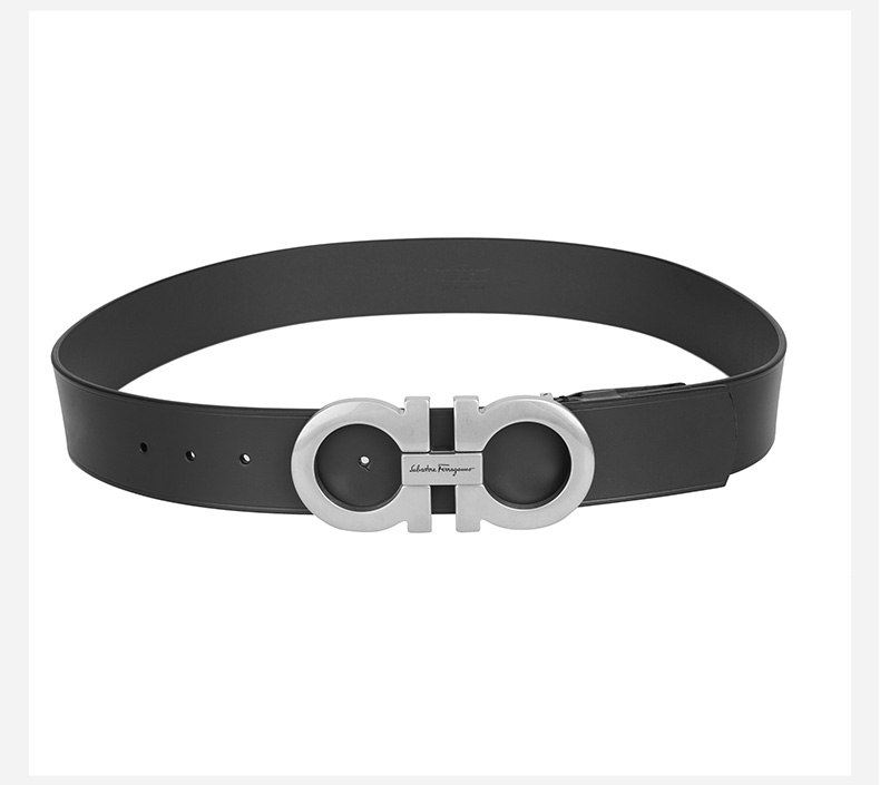 Salvatore Ferragamo 菲拉格慕 4.5cm宽做旧银扣黑色男士腰带 99181