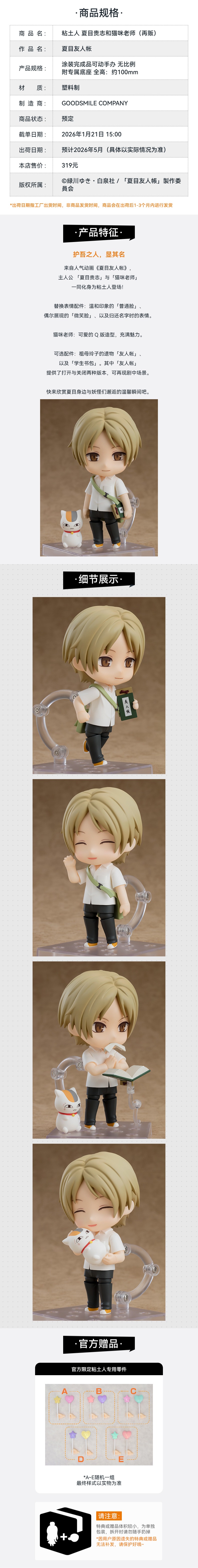 【GSC预售定金】粘土人 夏目贵志和猫咪老师 夏目友人帐 手办模玩