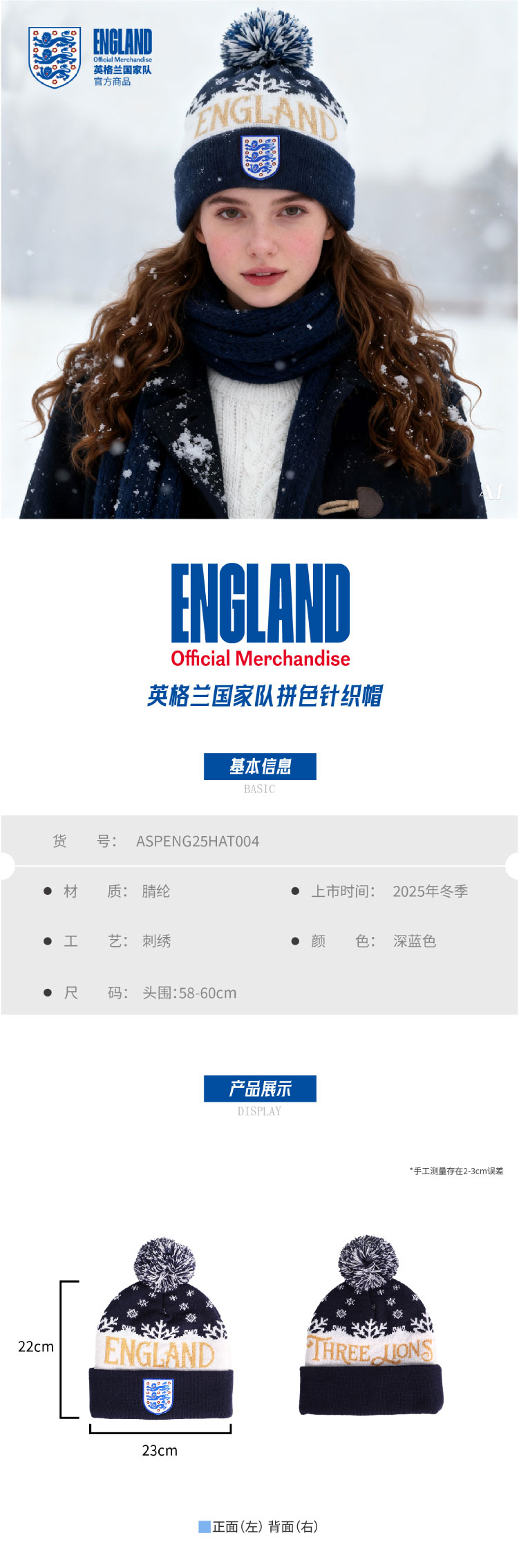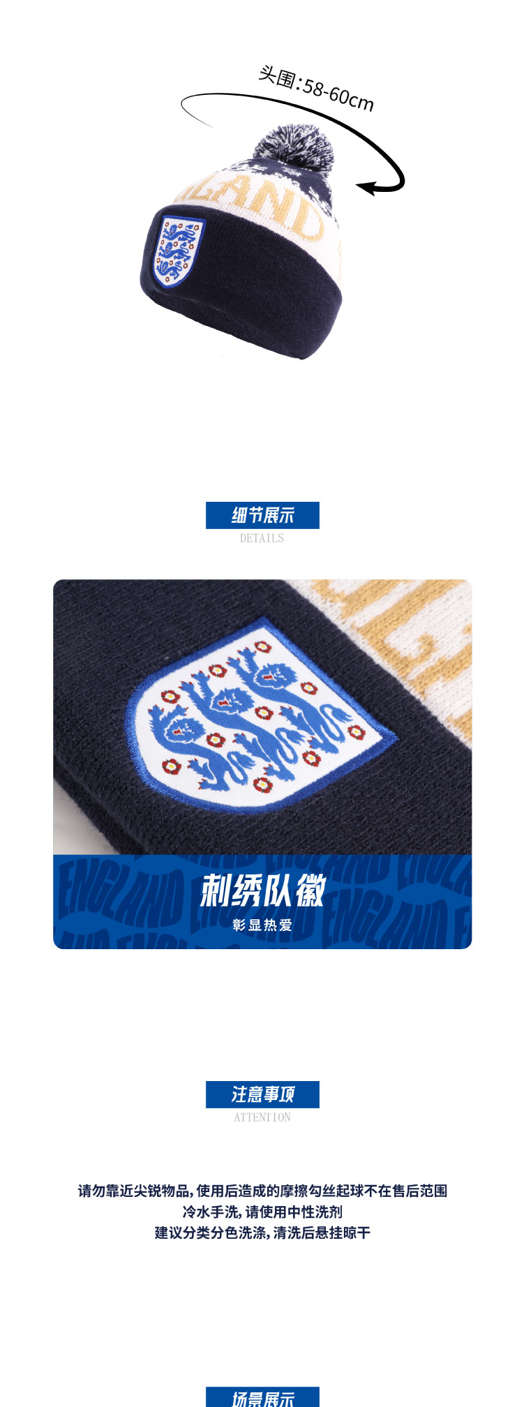 【官方正版】英格兰国家队 | 秋冬拼色针织帽复古保暖英伦风