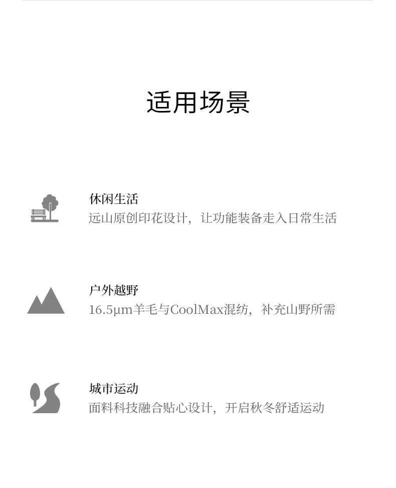 提供羽绒服、冲锋衣、美丽奴羊毛、T恤、运动短裤、背包、水壶等专业运动产品
