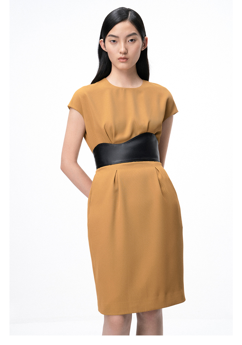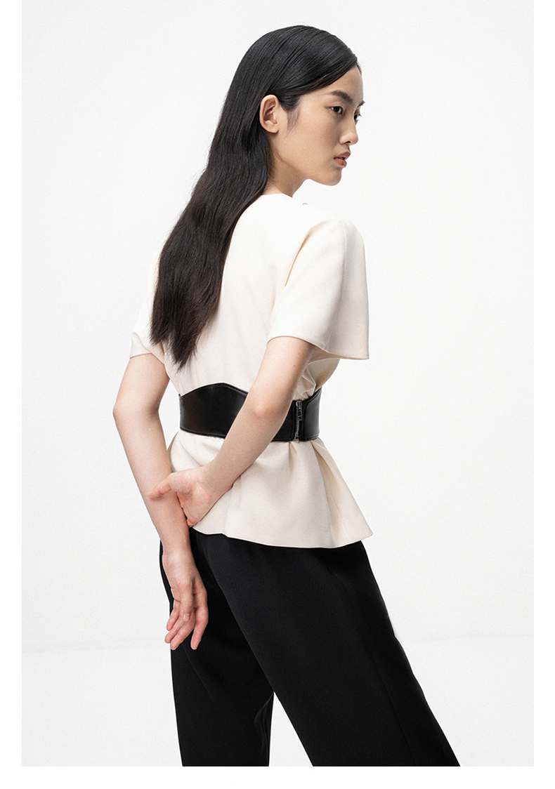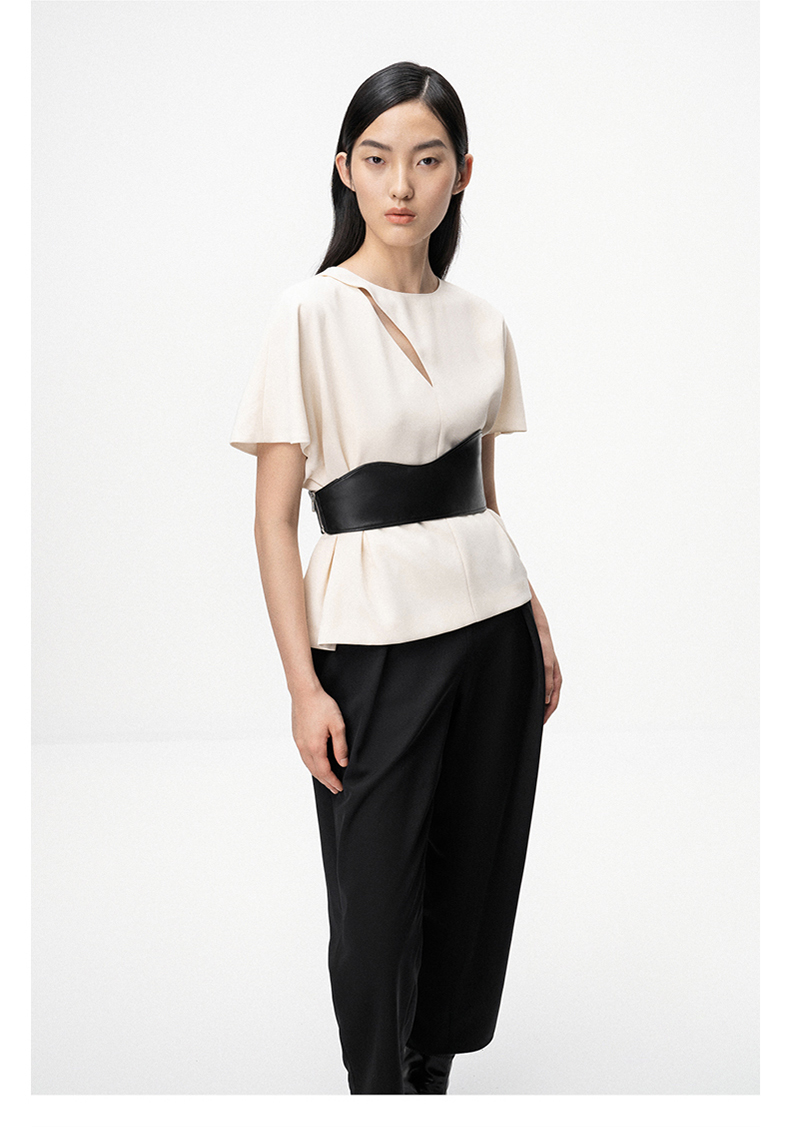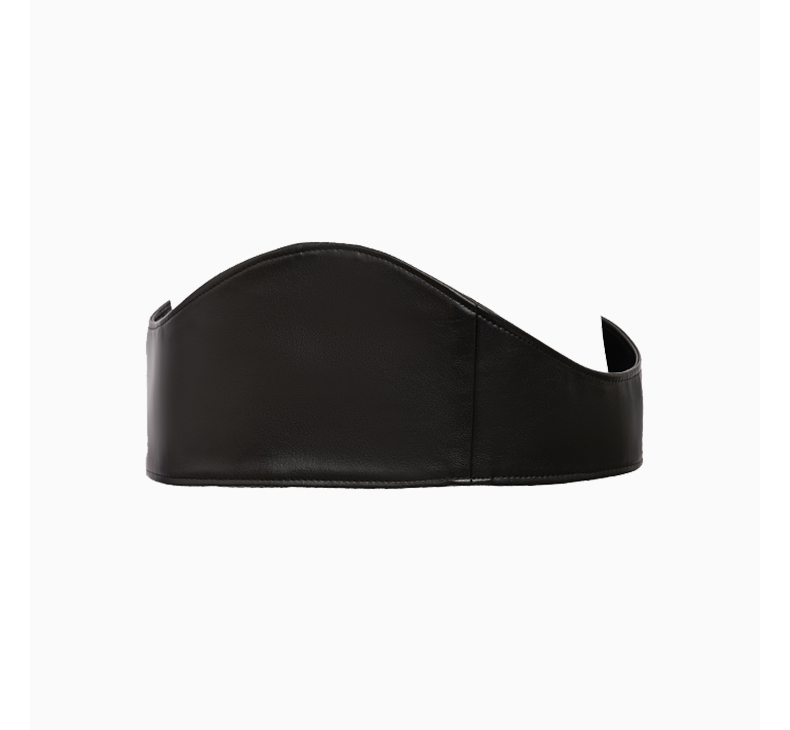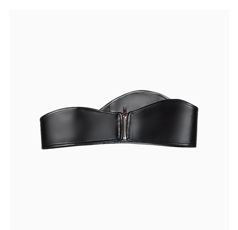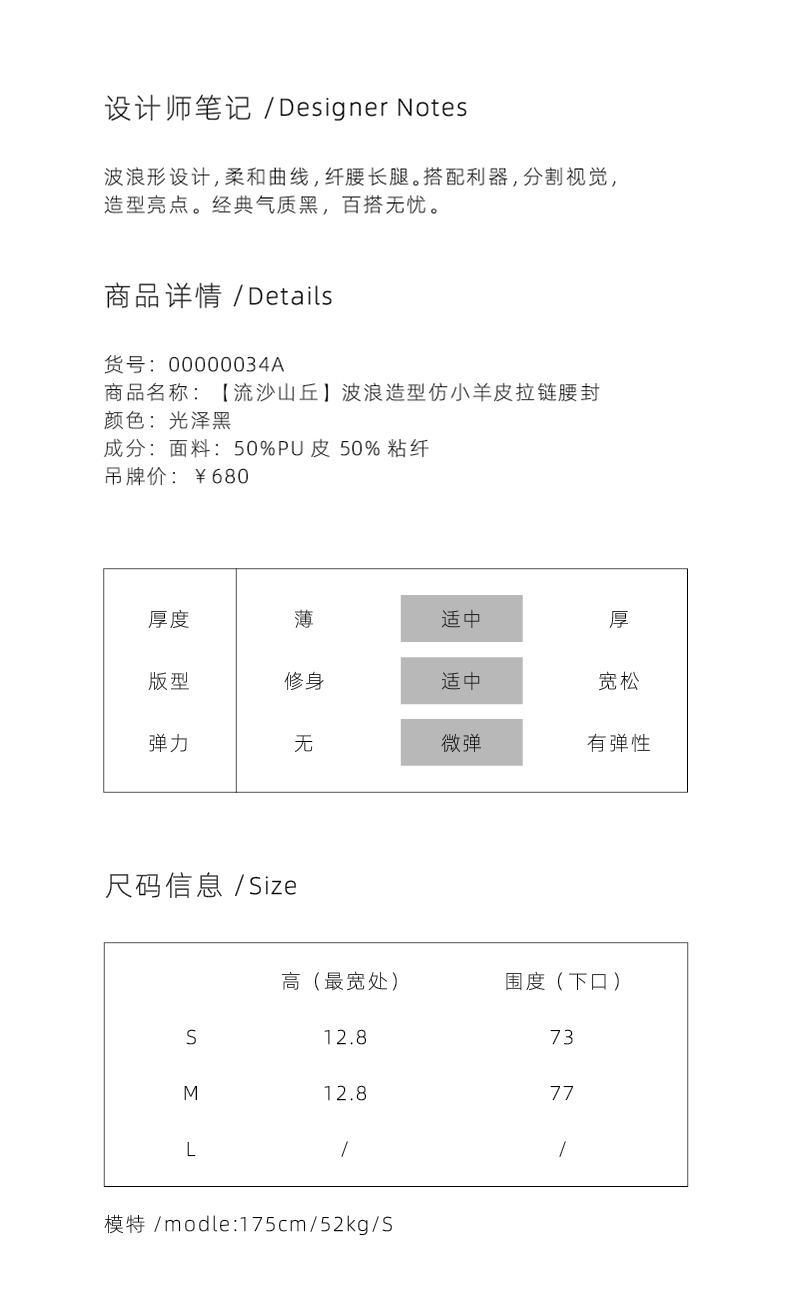 【流沙山丘】波浪造型仿小羊皮光泽黑拉链腰封/00000034A