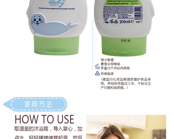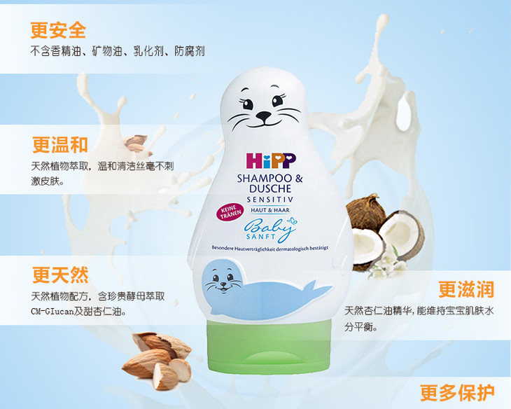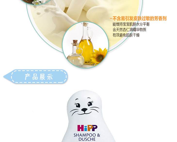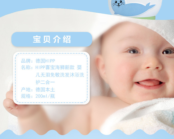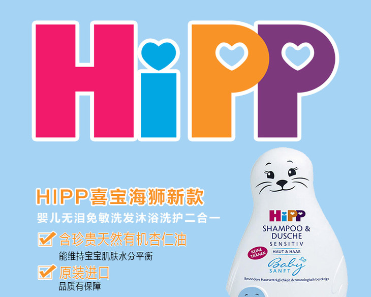 【保税仓】HiPP德国喜宝海狮婴儿儿童无泪免敏洗发沐浴二合一200ML