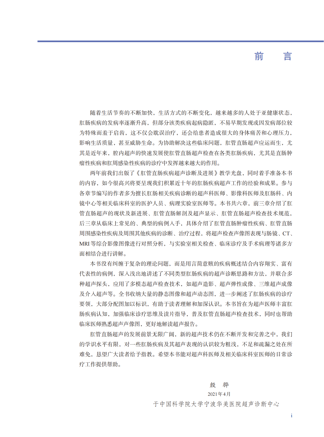 本书共六章。前三章介绍了肛管直肠超声的现状及新进展、肛管直肠解剖及超声显示、肛管直肠超声检查技术规范,后三章从临床上常见的、典型的病例入手,具体介绍了肛管直肠肿瘤性疾病、肛管直肠周围感染性疾病及周围其他疾病的诊断、治疗过程,将超声检查声像图表现与肠镜、CT、MRI 等综合影像图像进行对照分析,与实验室相关检查、临床诊疗及手术病理等诸多方面相结合进行讲解。