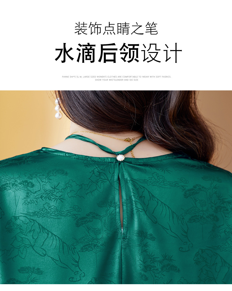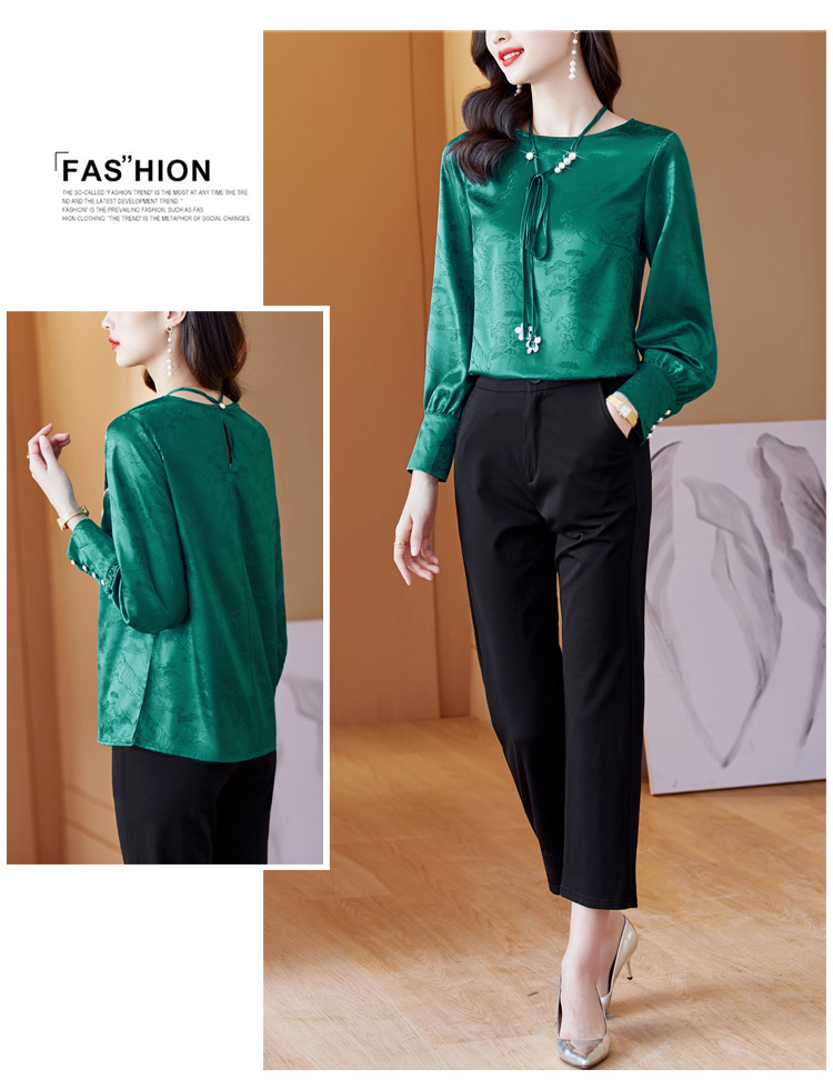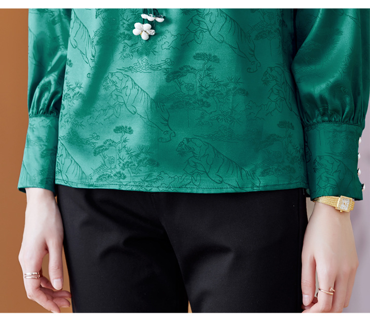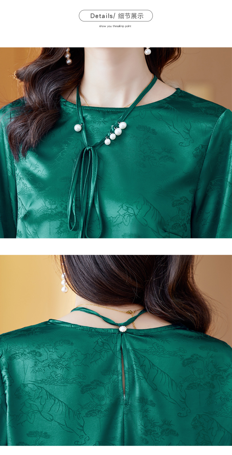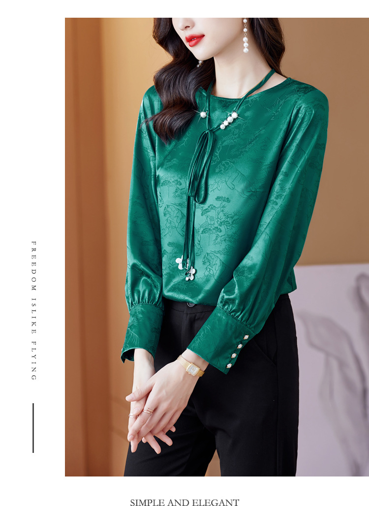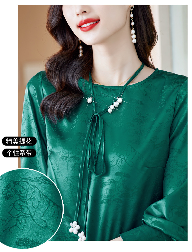 法式复古,圆领钉珠系带休闲提花仿真丝衬衫KQL-861