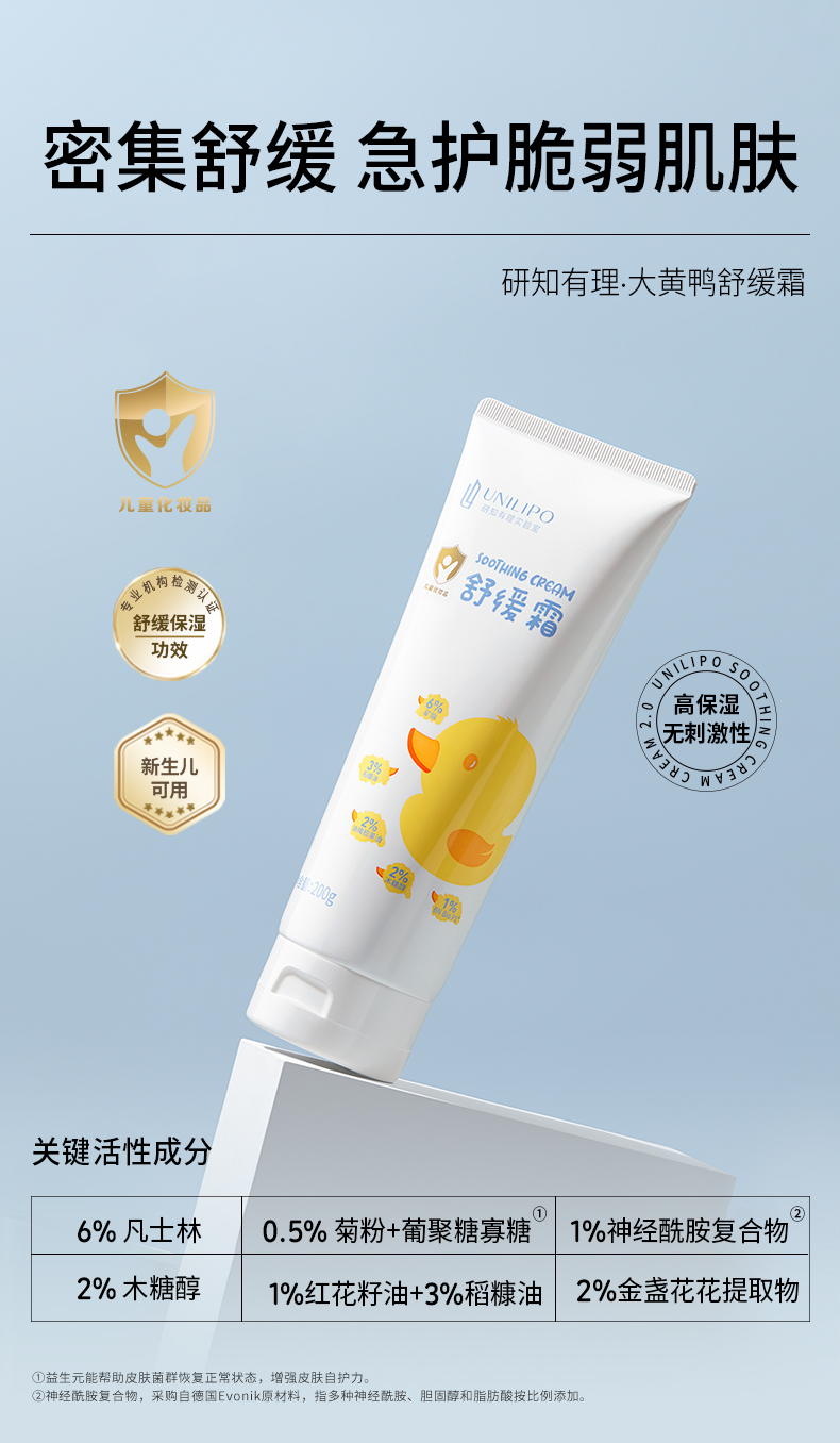 【直击皮肤敏*红*痒】UNILIPO研知有理 大黄鸭舒缓霜200克