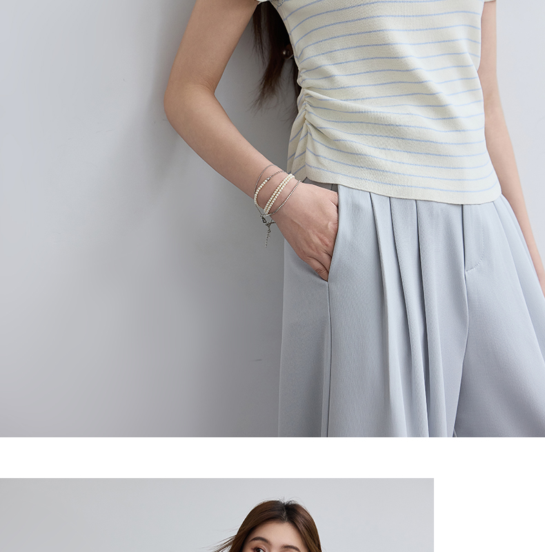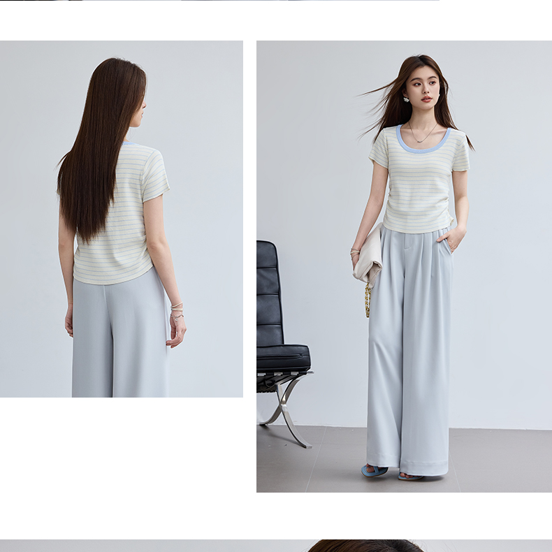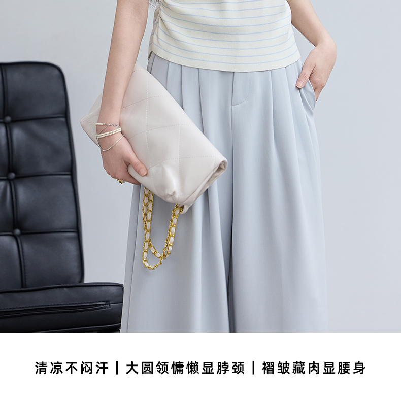 肌理纹微压皱宽松轻薄长裤
