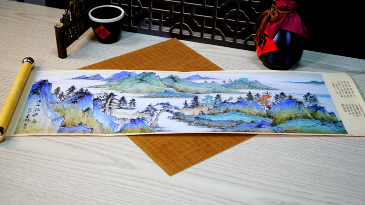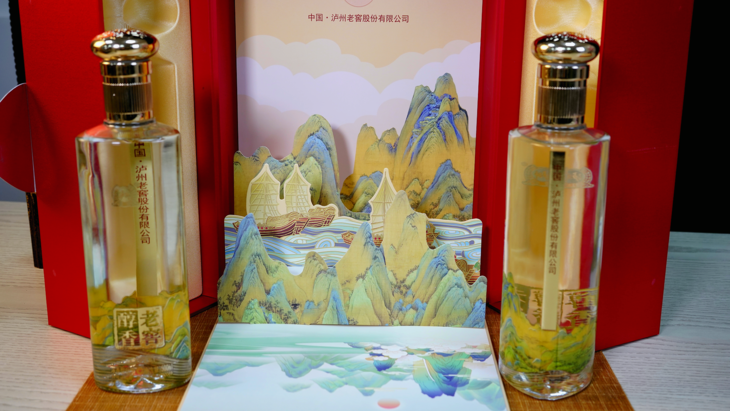 自动弹出的立体剪纸,是由四川省广安市武胜县的剪纸艺术大师设计,将《江阳运酒图》《江山秋兴图》融为一体,展示了大好河山的同时,也表现了泸州老窖的人文历史。