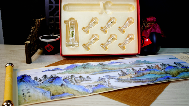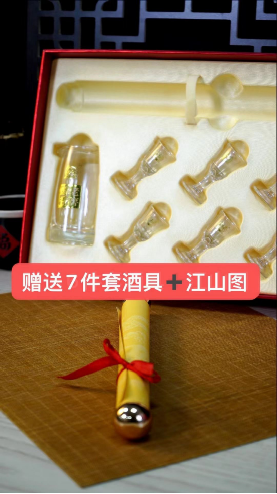 礼盒自带八件套,老窖原厂高品质酒具一壶六杯(侧面有官方符合性声明),当代艺术家名画。