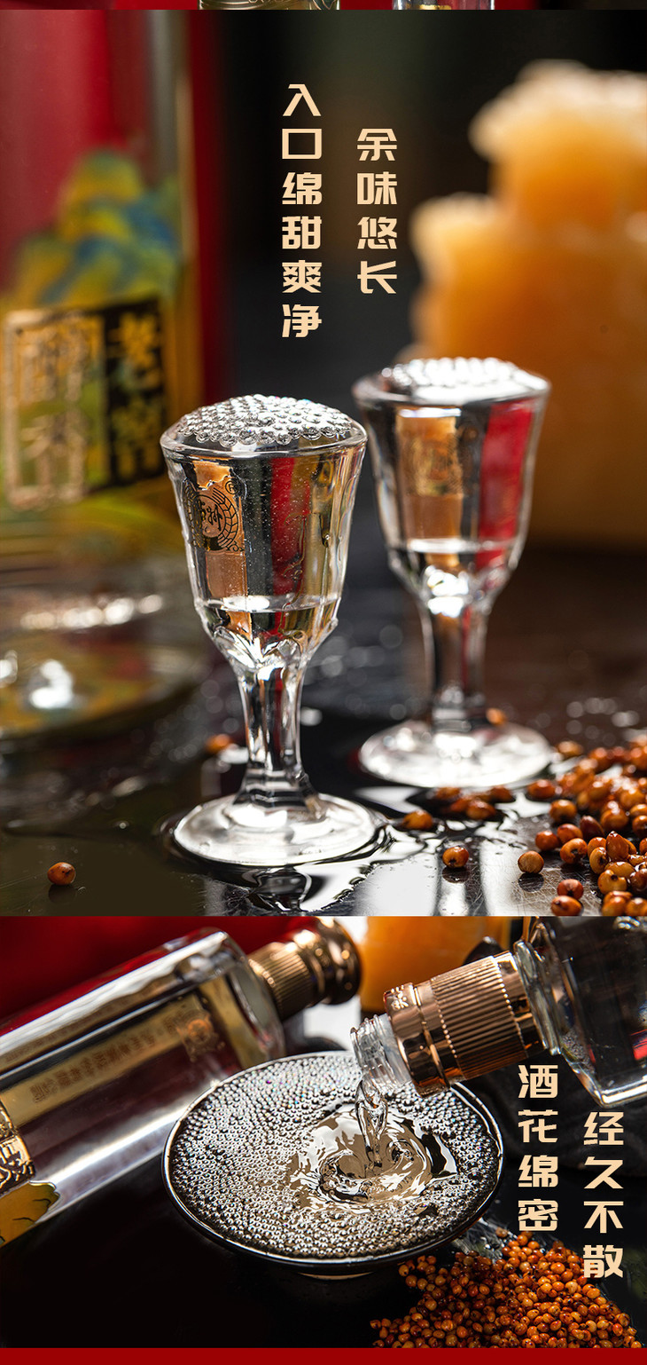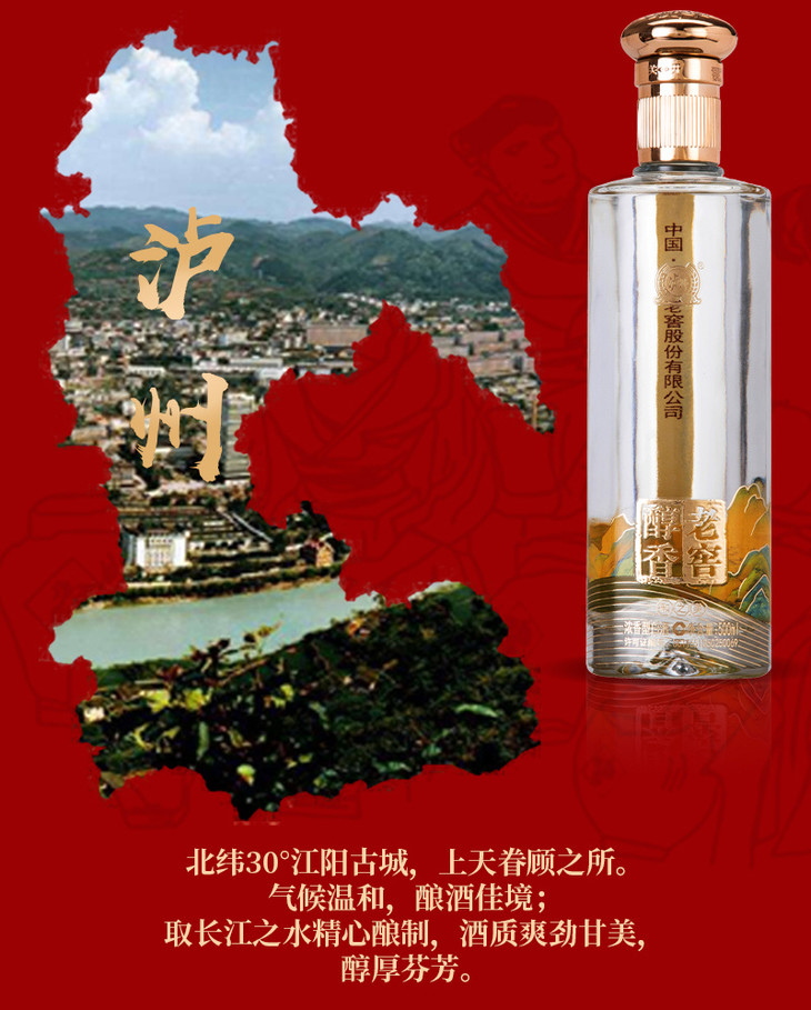 浓香鼻祖,酒中泰斗,多年历史沉淀,泸州老窖股份有限公司出品,采用泸州老窖酒传统酿制技艺酿造,酒质无色透明、窖香幽雅、绵甜爽净、柔和协调、尾净香长,风格典型。