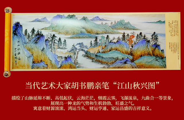 当代著名书画家 胡书鹏 创作《江山秋兴图》描绘了山脉延绵不断、高低起伏,云海茫茫,烟霞云霁,飞瀑流泉,九曲合一等景象。