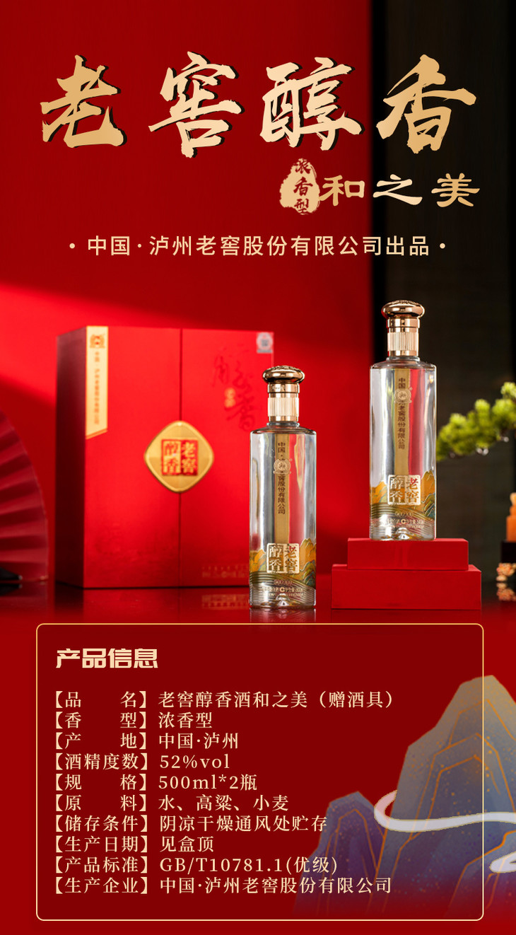 专门为年货节生产的新品,老窖醇香 和之美(只有连续使用100年以上的酒窖池才能称之为老窖) 和之美(寓意和美团圆,生活美满)。