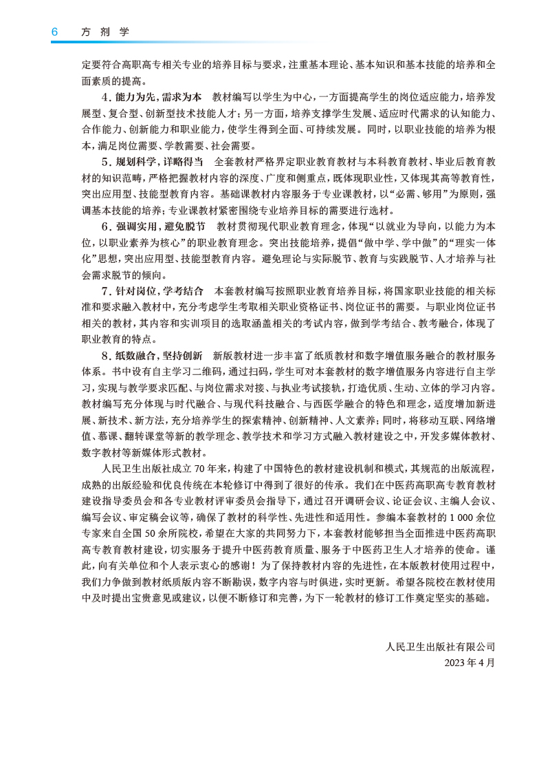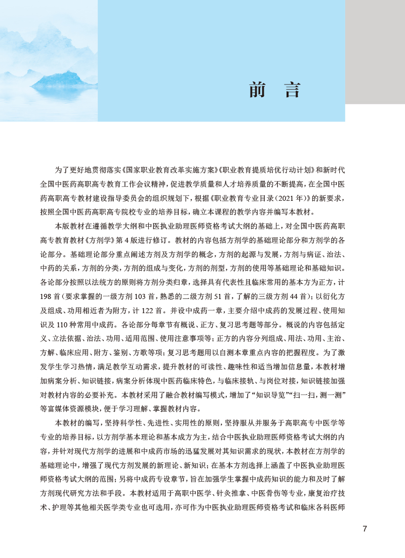 本教材系第5轮全国中医药高职高专教材国家和卫健委"十四五"规划教材之一。是在上版教材基础进行全面修订,以期反映中医药高职高专教育教学成果,职业教育特色,中医药人才培养规律。本版教材强化教材意识形态建设,筑牢思想的根基,以最新课程要求为标准,增加部分理论知识和临床实践内容,如方剂的临床应用等;增编思政元素,完善二维码等数字内容,体现本学科的基本理论、基本知识、基本技能;加强纸数融合,发挥数字化教学优势和特点,以更好适应全国中医药专科教育的需要。