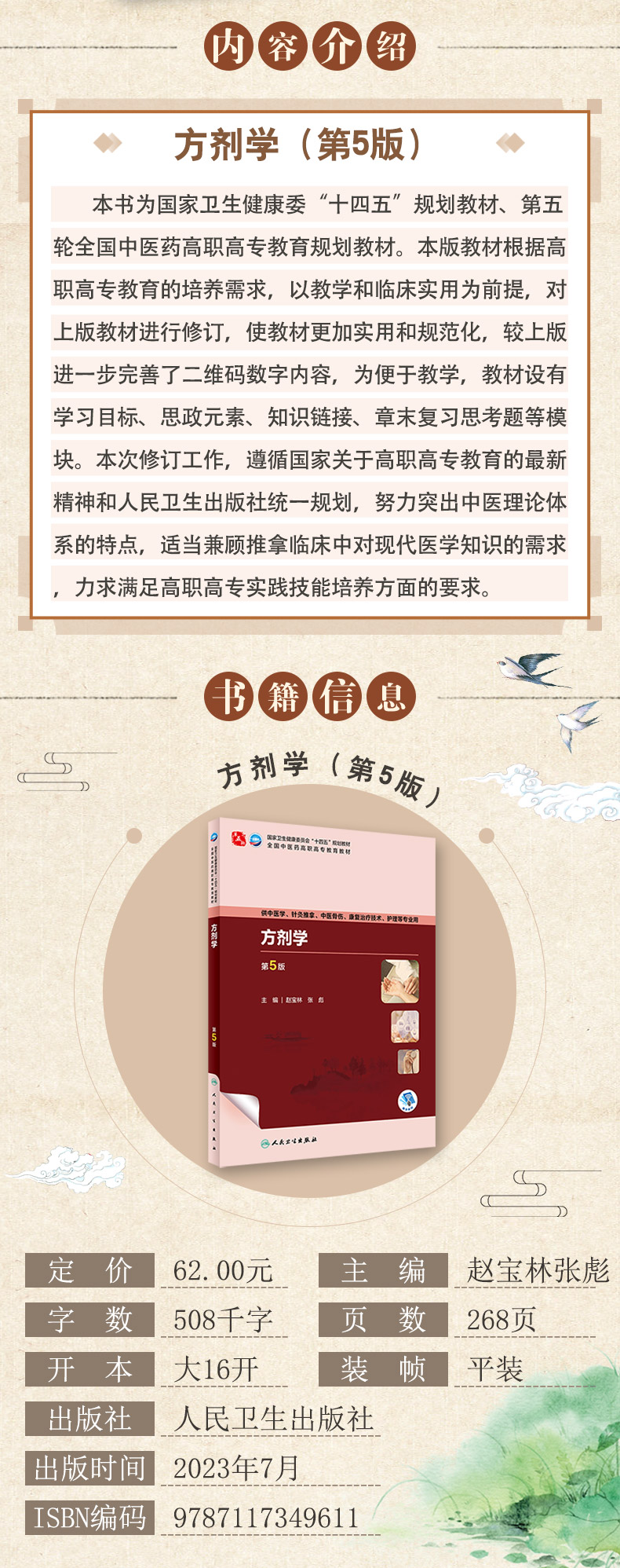 方剂学 第5版 赵宝林 张彪 十四五规划 全国中医药高职高专教育教材 供中医学针灸推拿护理等专业用 人民卫生出版社9787117349611