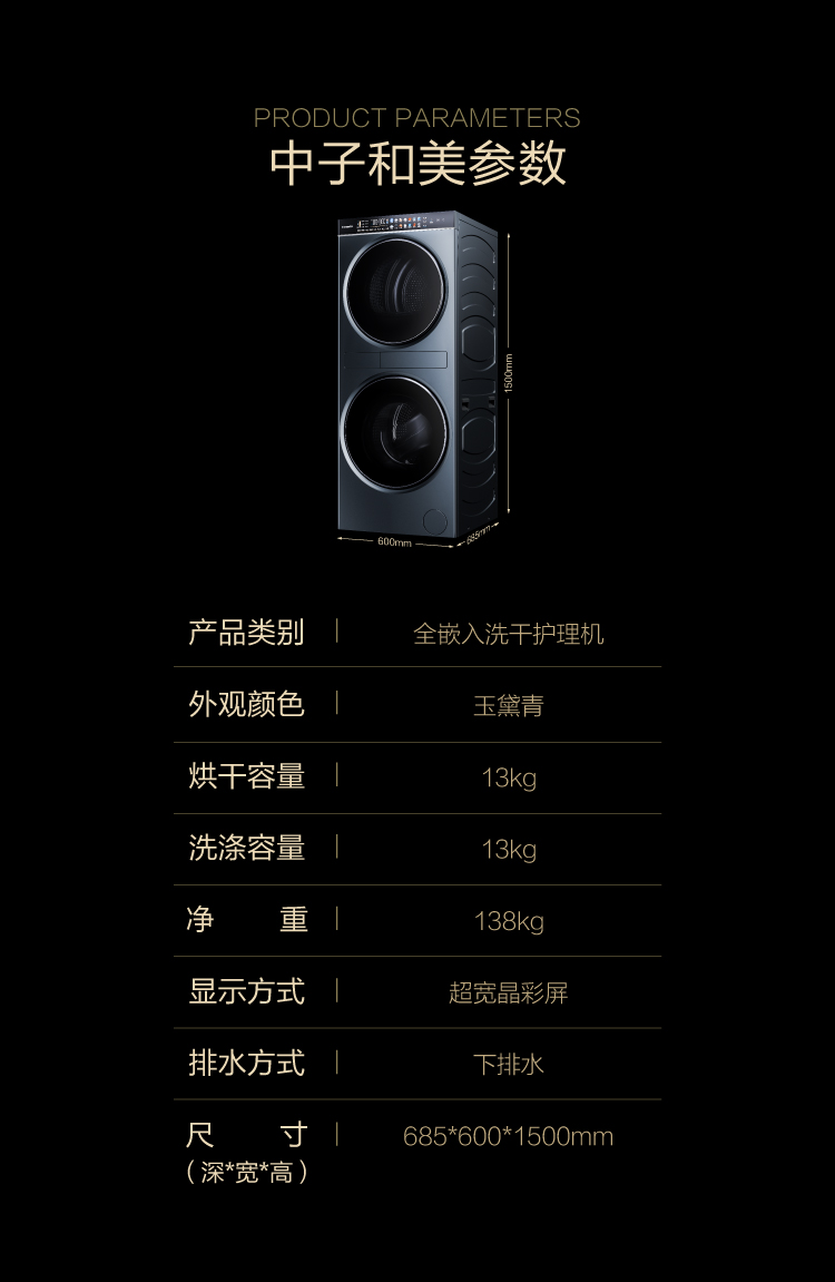 卡萨帝中子和美大容量13公斤洗衣机干衣机家用变频洗烘护理机C9 Y13BL13L2CU1