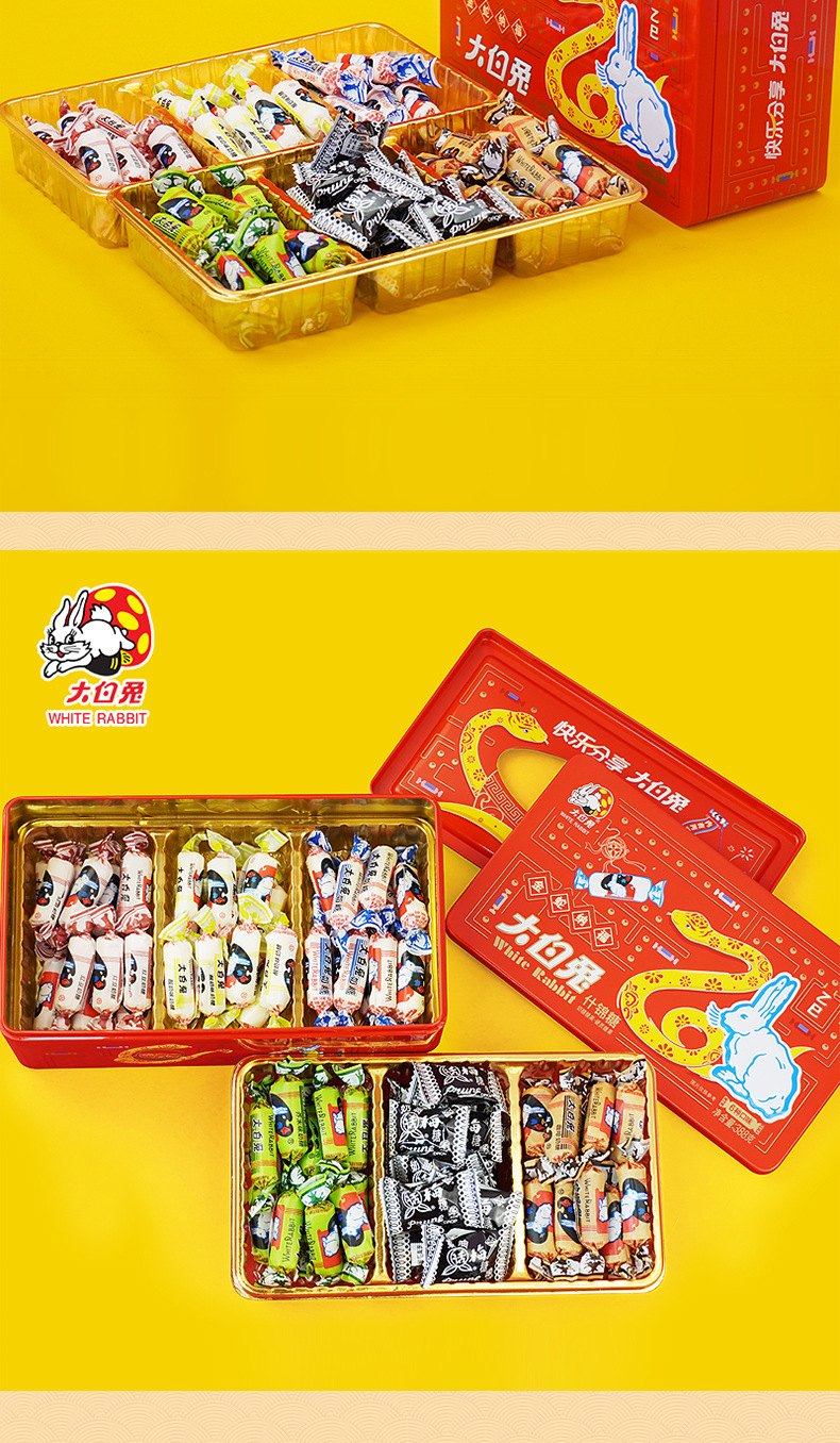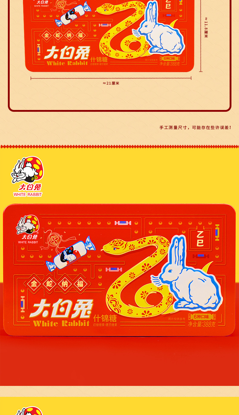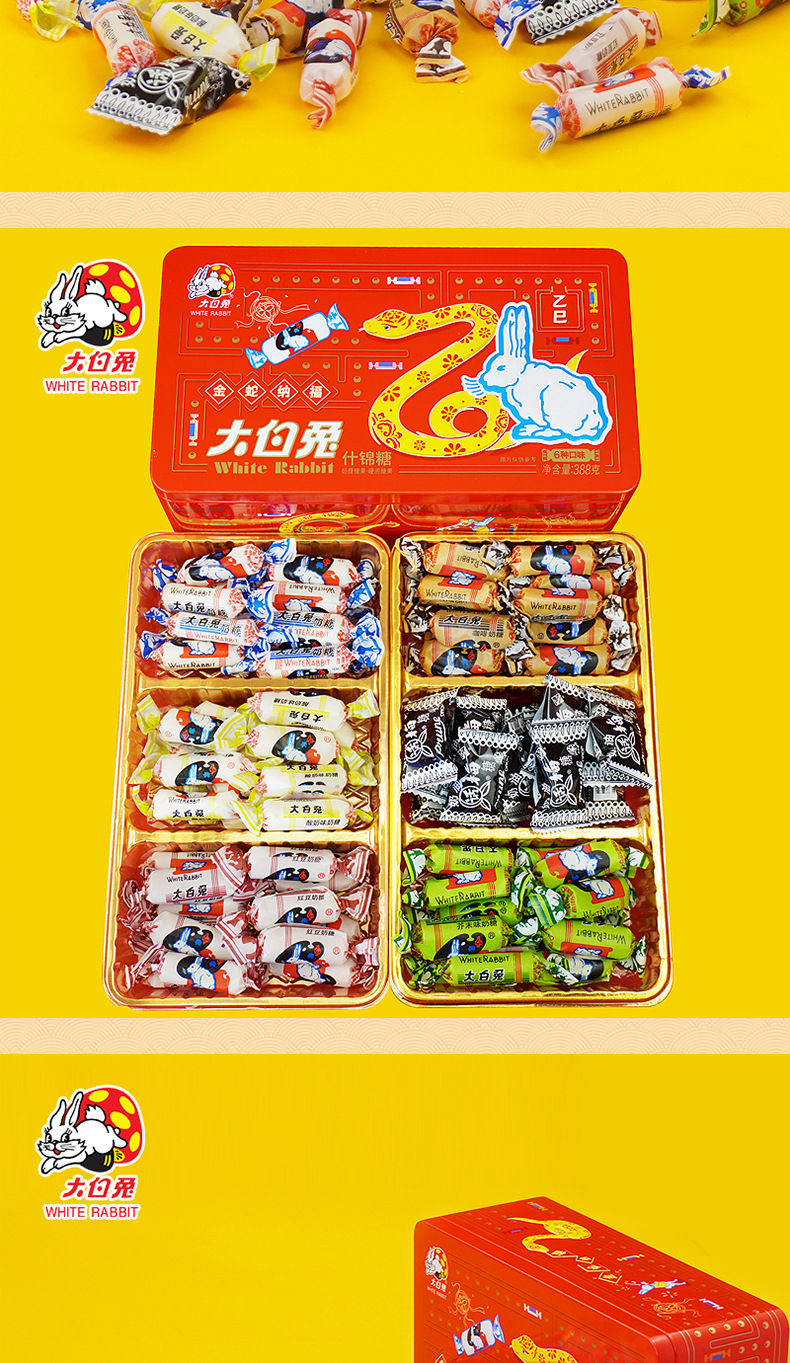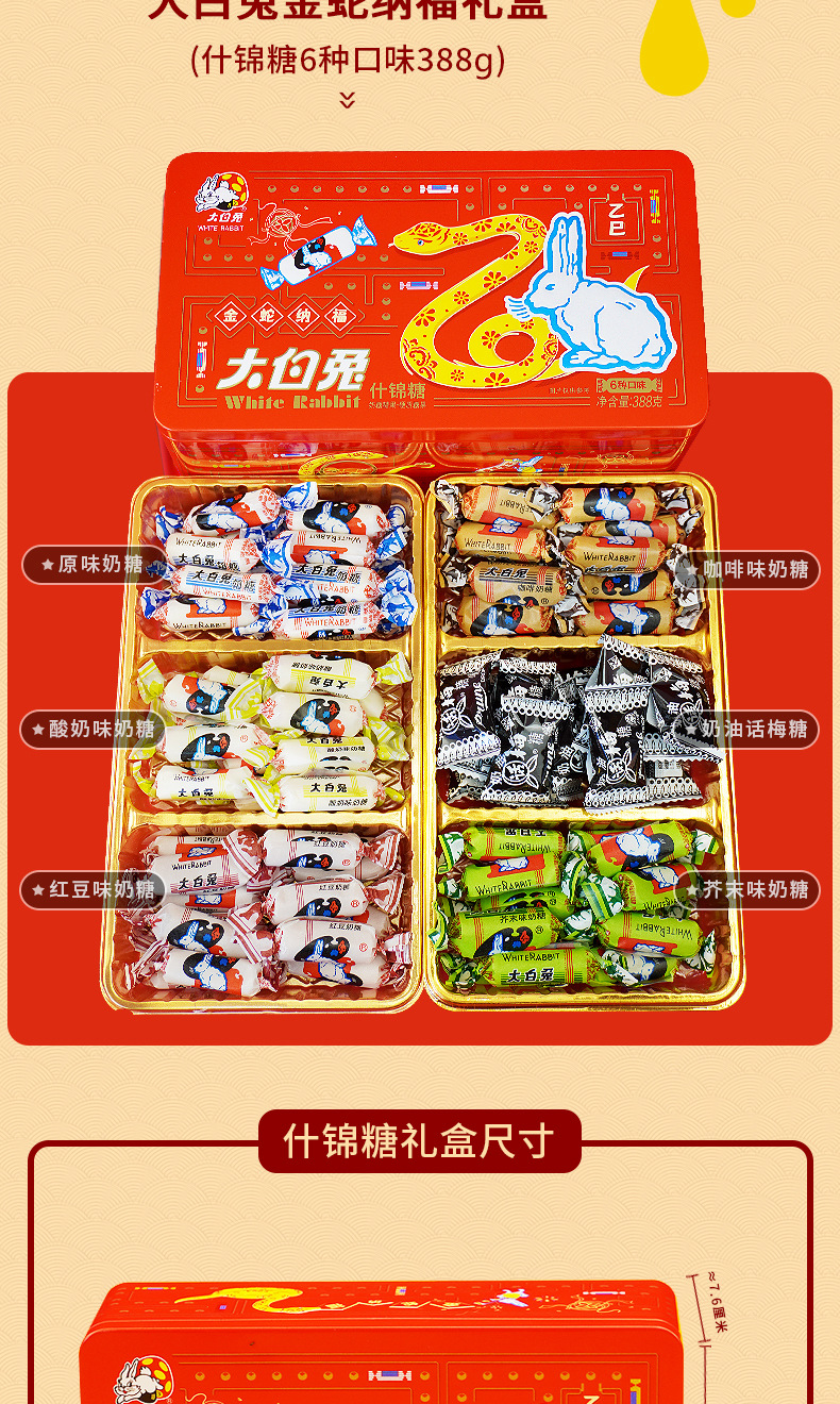 超值礼盒装!【儿时味道,奶香味道,甜而不腻!】大白兔奶糖礼盒装 388g糖果6口味什锦糖 金蛇纳福礼盒喜糖-QB
