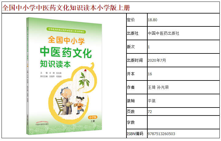全国中小学中医药文化知识读本小学版上+全国中小学中医药文化知识读本小学版下 王琦 孙光荣 中国中医药出版社 传统文化传承