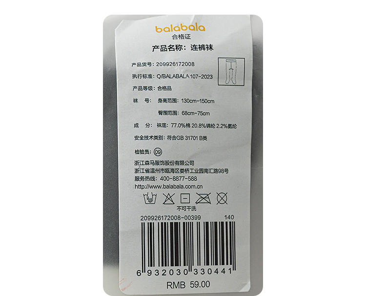 【balaOne】巴拉巴拉儿童连裤袜子宝宝打底裤女童舞蹈袜棉单条装