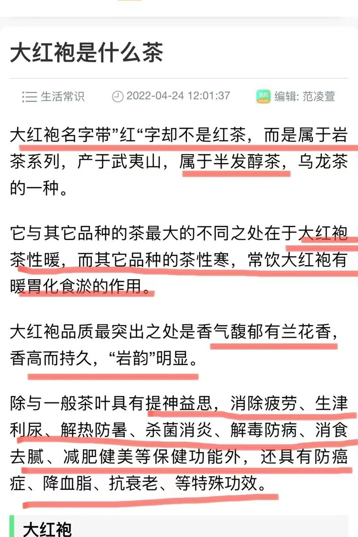 🔥 为什么这款大红袍值得你闭眼入? 🌿 武夷大红袍:从传奇历史里走来的 “茶中贵族” 你知道吗?武夷大红袍的故事,要从几百年前的武夷山说起。 相传明代一举人赴考途经武夷山,突发腹痛,得和尚所赠大红袍茶,饮后病愈。 他考中状元后,以锡罐带茶回京。恰逢皇后病重,百医无效,状元献茶,皇后饮后痊愈。 皇上大喜,赐红袍一件,命状元赴九龙窠将红袍披于茶树上,并令其为贡茶,派官吏看管采制。 因官吏每年着大红袍挂袍于茶树,此茶遂得名 “大红袍”。