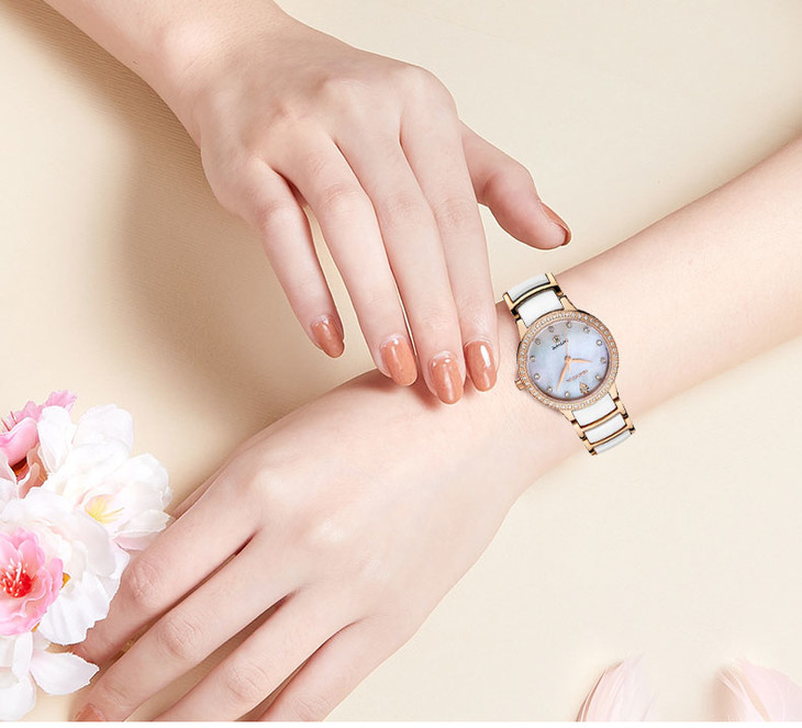 尼诺里拉时尚陶瓷贝母面蓝宝石石英女表 11059