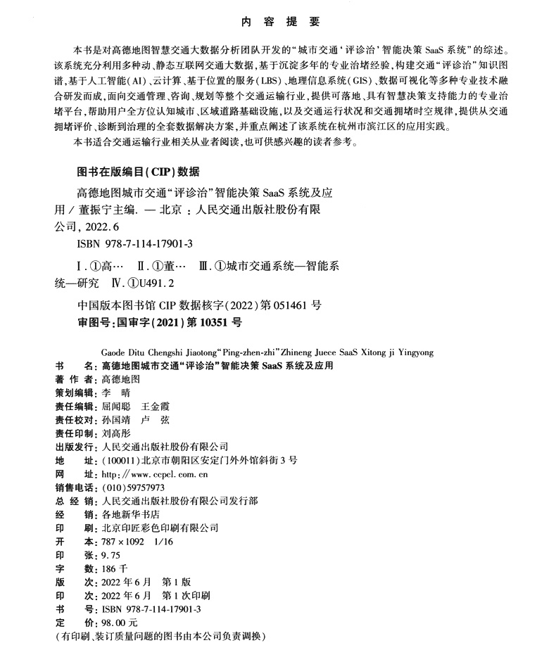 书名:高德地图城市交通“评诊治”智能决策SaaS系统及应用