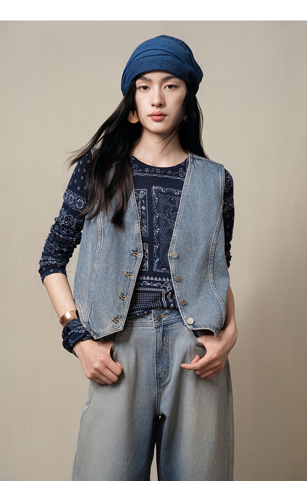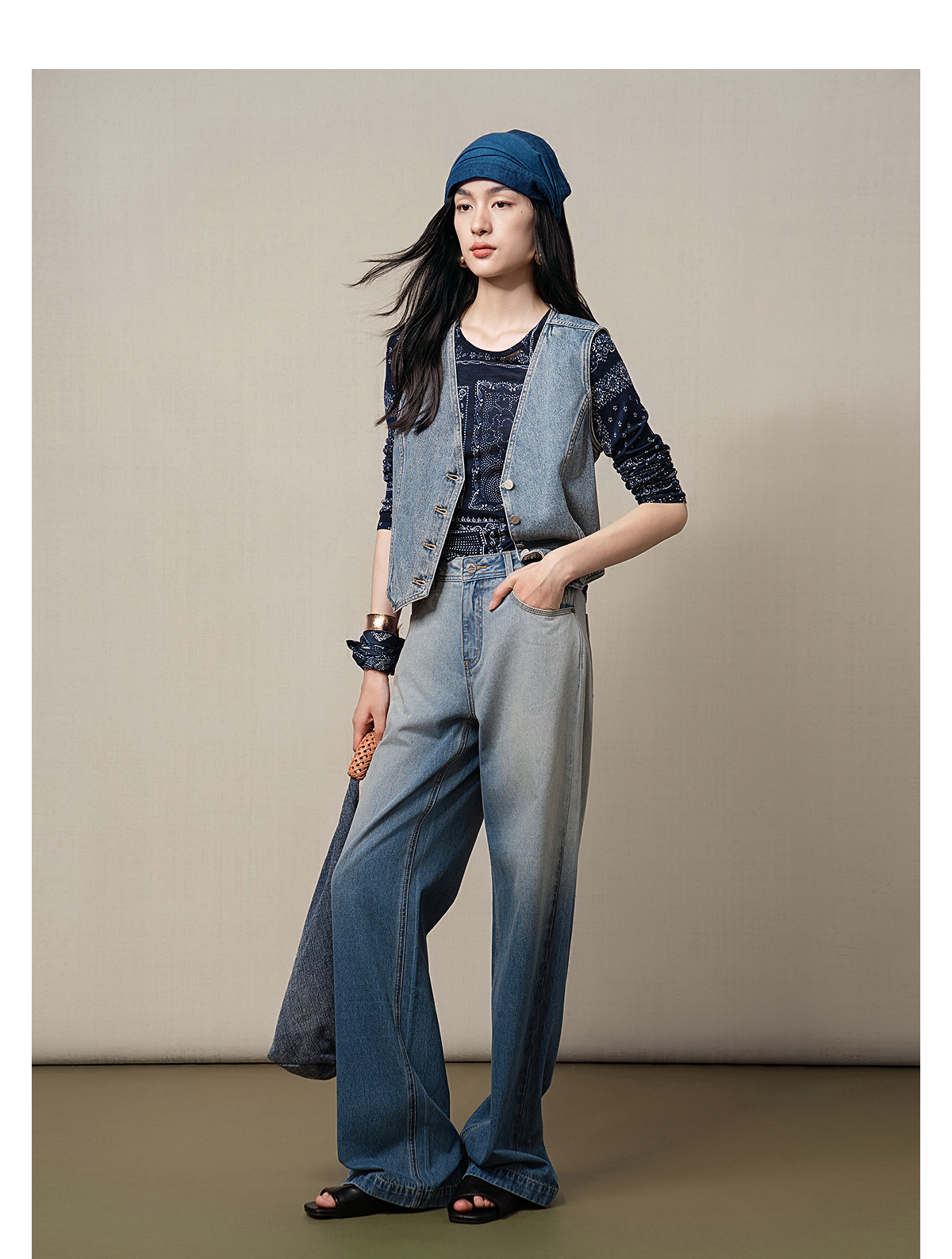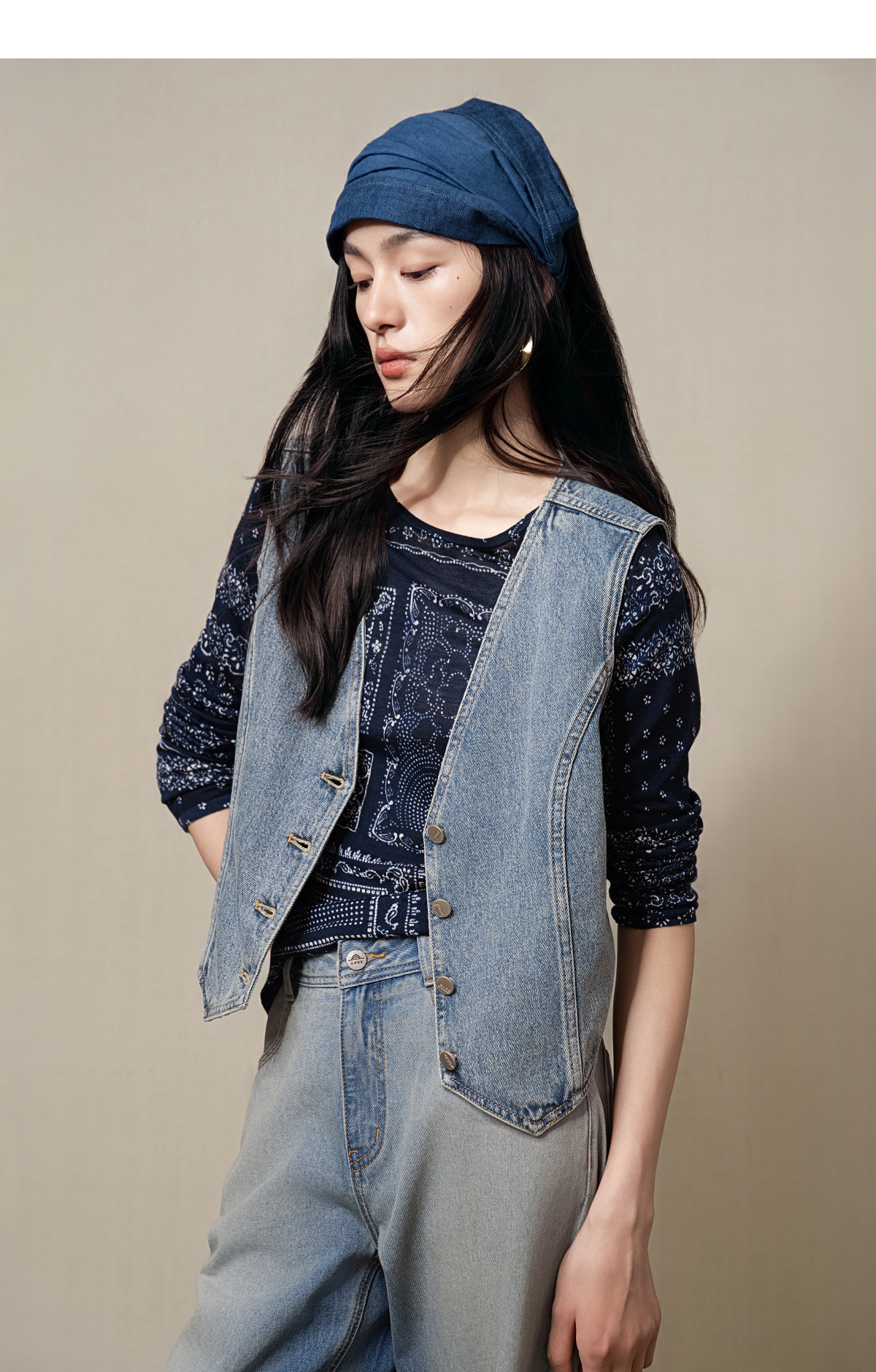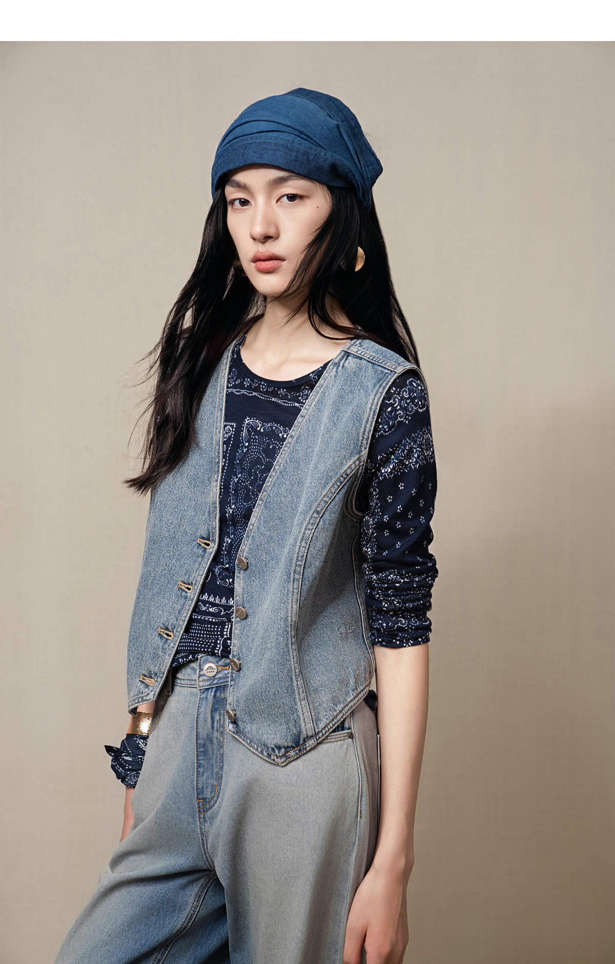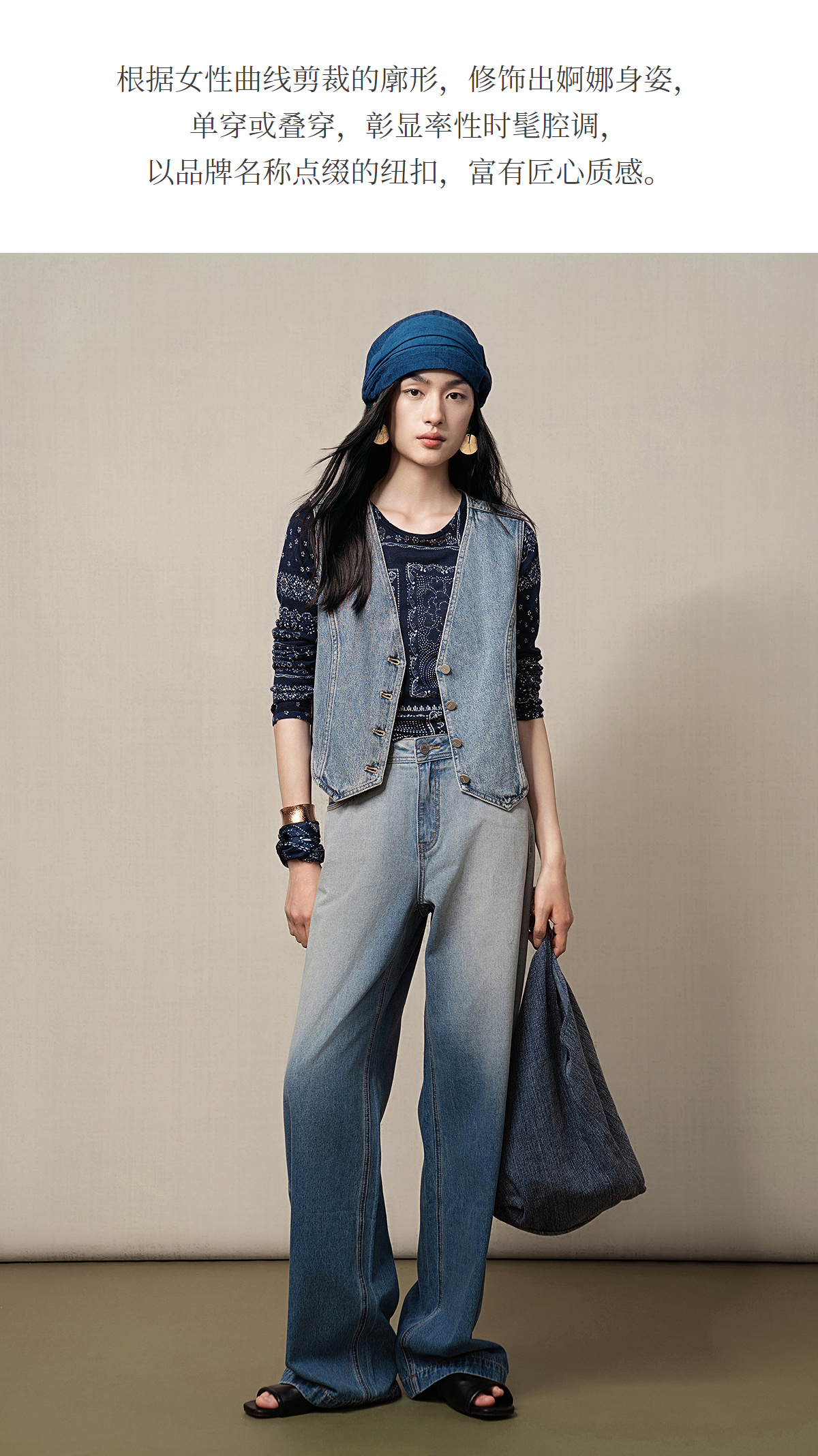 【林栖设计小店】(现货)【牛仔系列】棉混纺牛仔马甲修身显瘦2025早秋新款上衣女G1653005