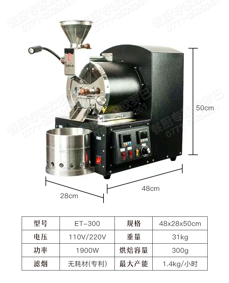 台湾E-train火车头烘豆机ET300 咖啡豆烘焙机自动滤烟 烘焙量300g