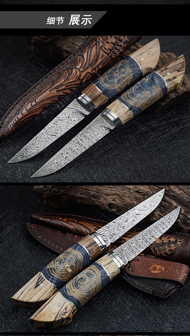 汉道【奥丁之眼直刀】瑞粉大马士革钢手工直刀固化木+渍纹木手柄收藏刀