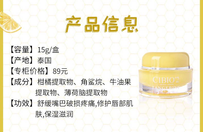MMT 泰国CIBIO'2睡眠修护唇膜(柑橘味)15g