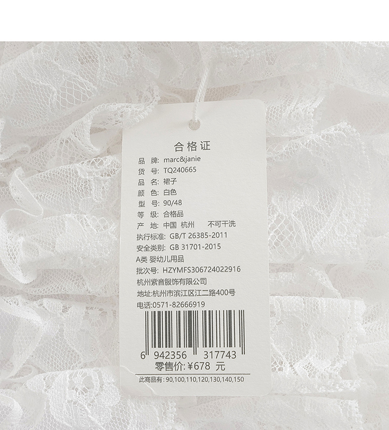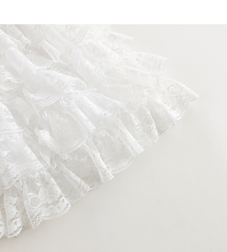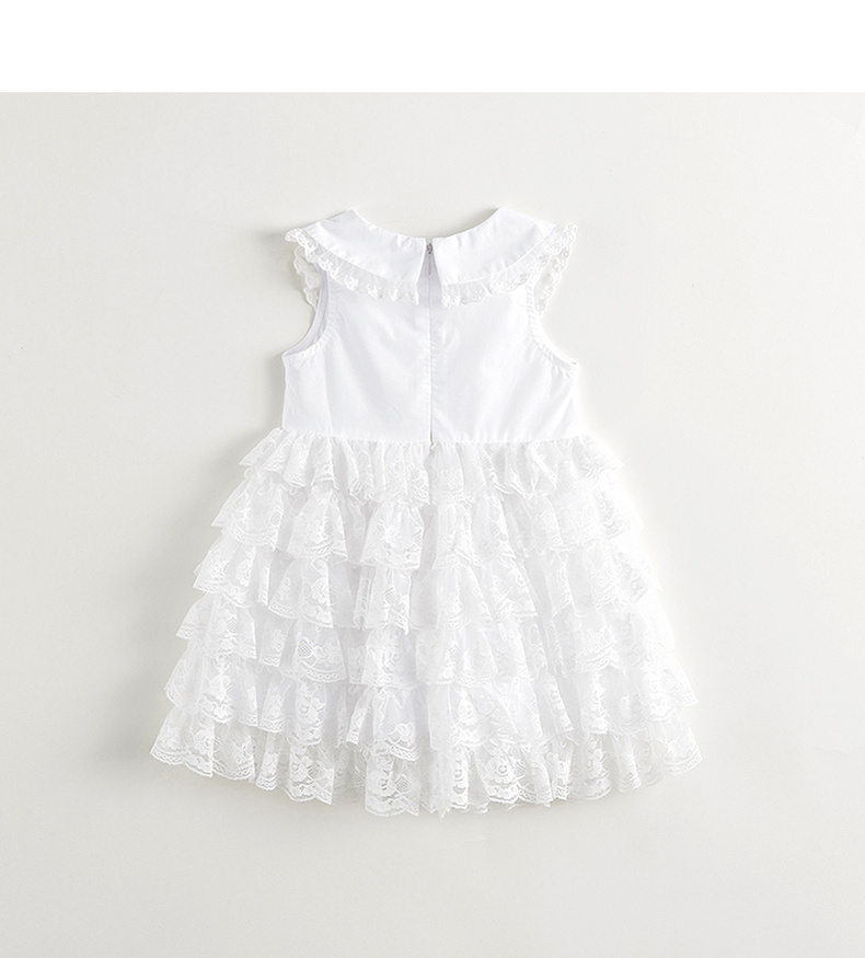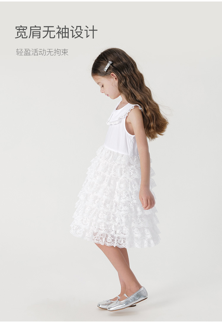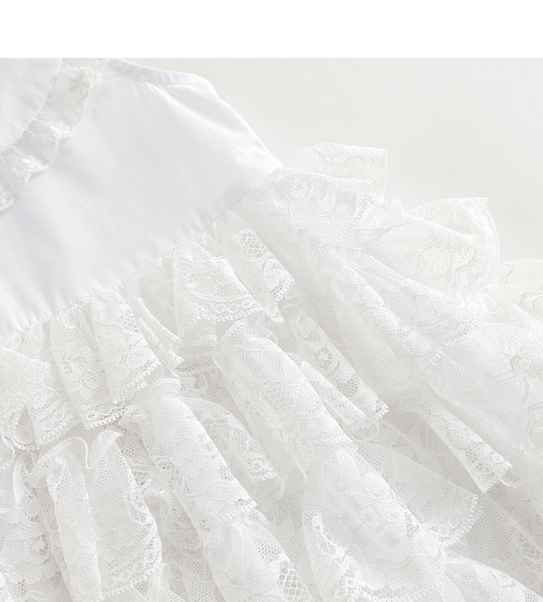 马克珍妮2024年夏装新款女童白色蕾丝网纱蛋糕连衣裙240665