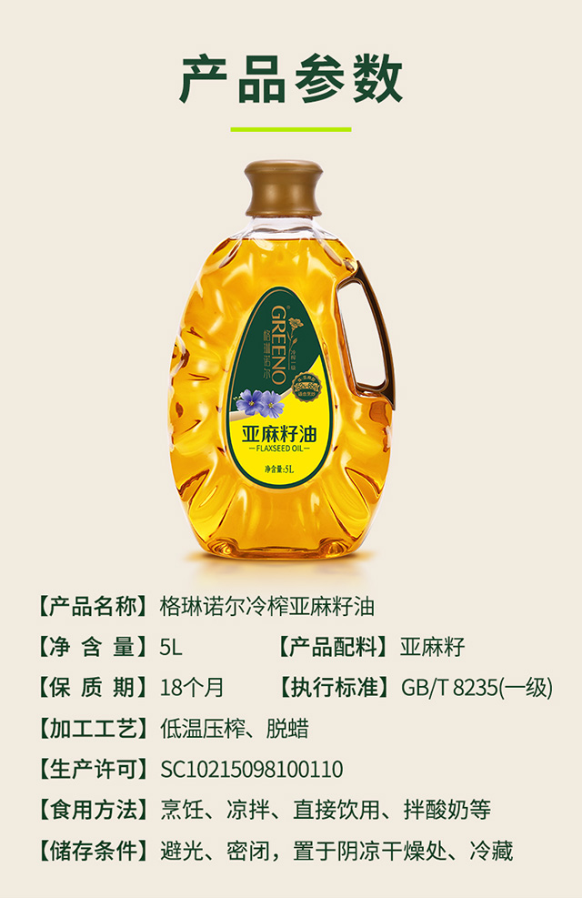 格琳诺尔 食用油5L 冷压榨一级亚麻籽油月子油适用于孕妇宝宝 公司团购 节日礼品