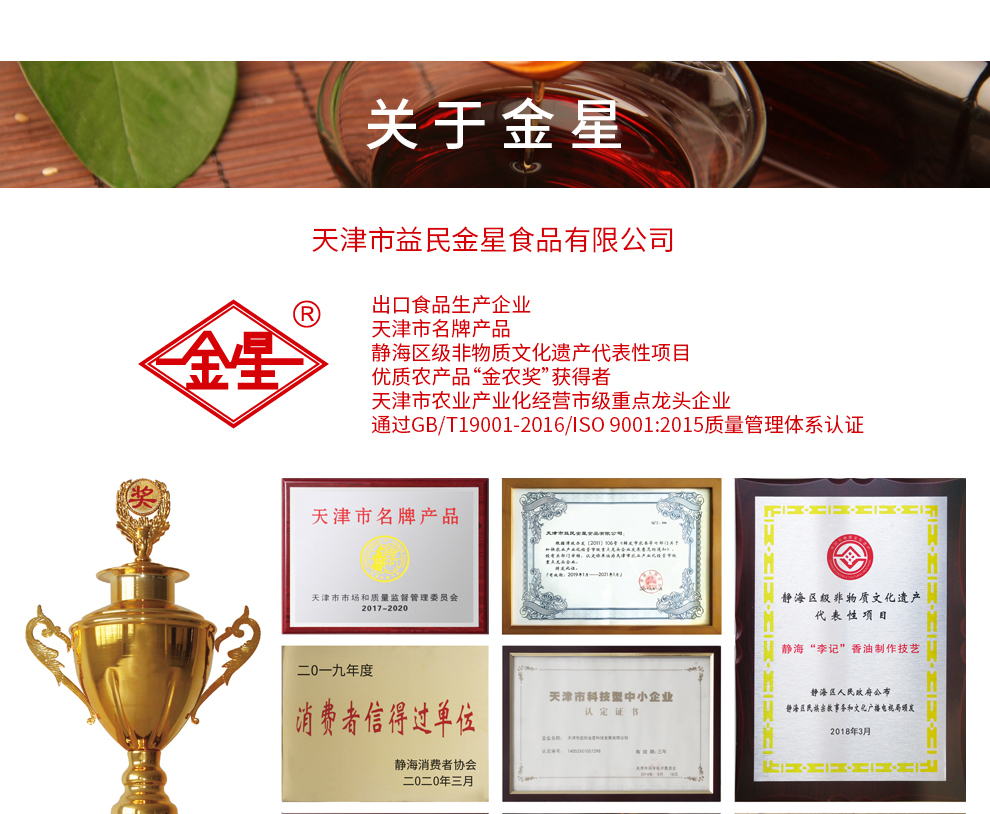 津农精品天津静海区金星小磨香油250ml*2瓶装