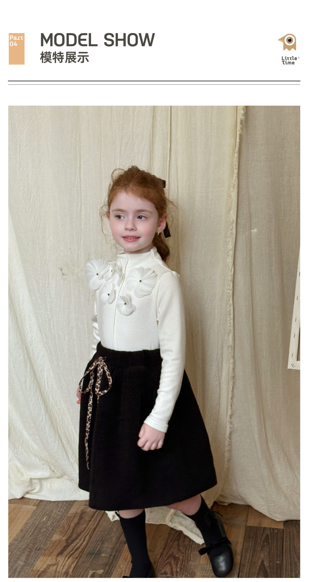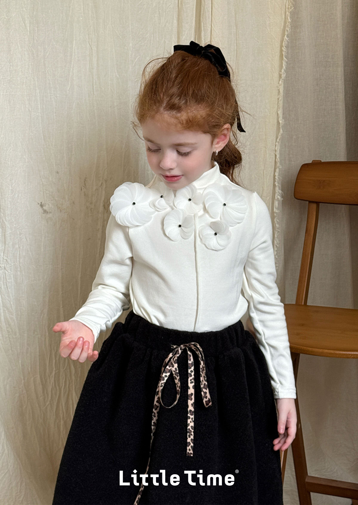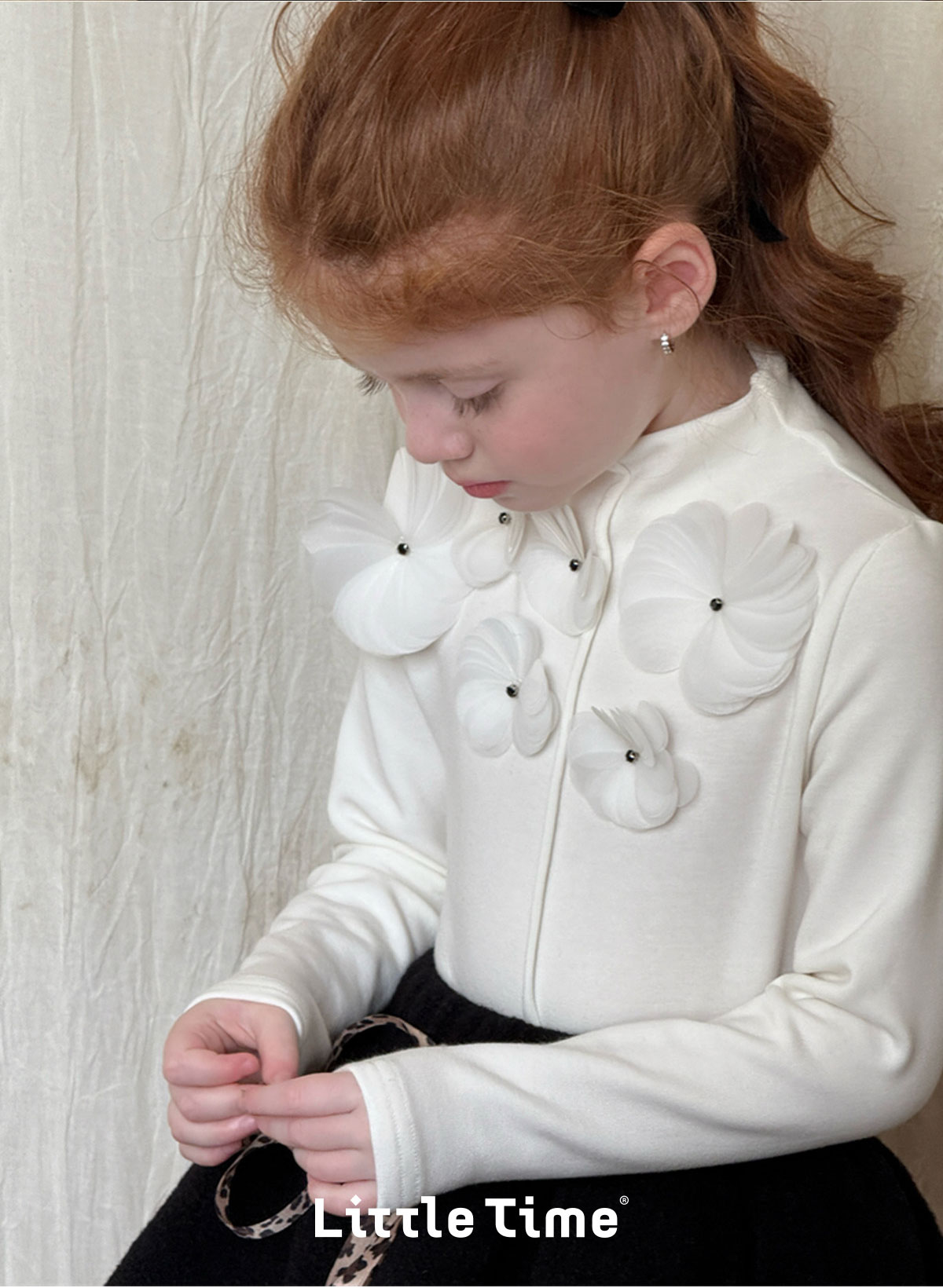 littletime女童T恤2025秋冬新款儿童立体花朵打底衫女宝长袖上衣