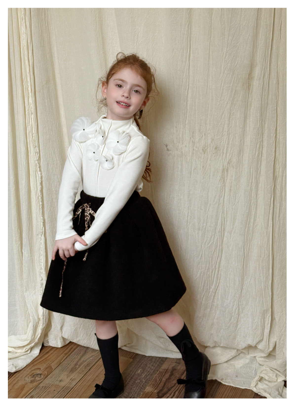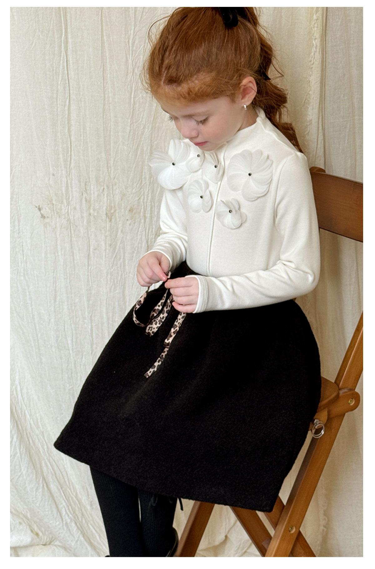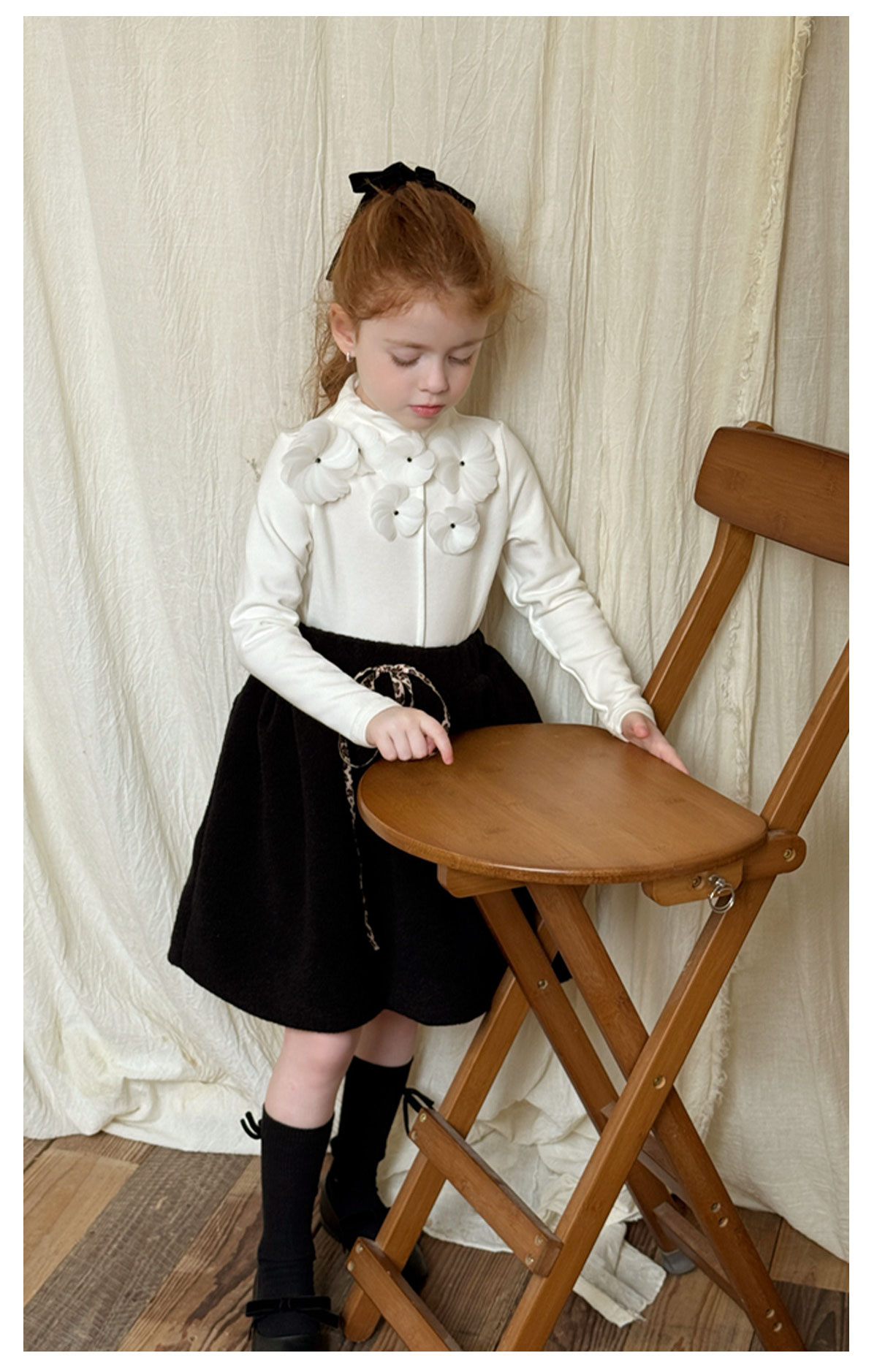 littletime女童T恤2025秋冬新款儿童立体花朵打底衫女宝长袖上衣