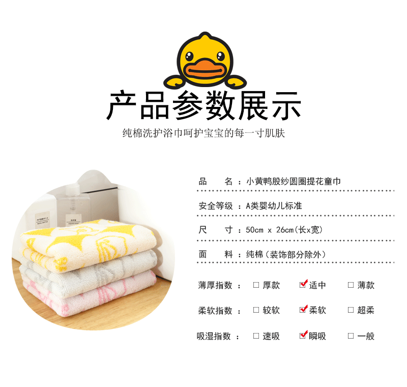 B.Duck小黄鸭股纱提圆圈儿童毛巾52*26CM 533