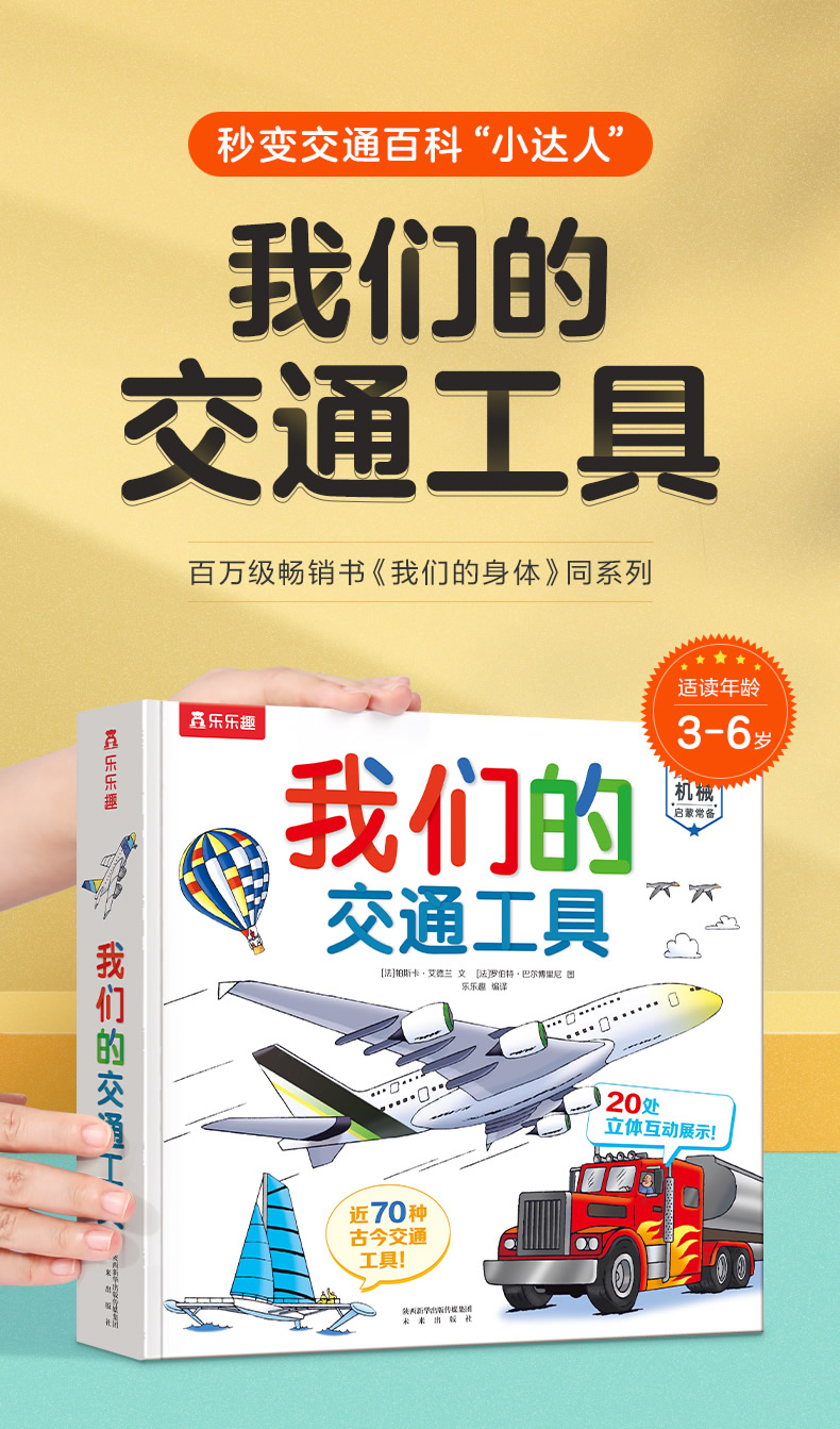 《我们的交通工具》绘本立体翻翻书,带孩子认识古今中外70种交通工具,《我们的身体》同系列,汽车迷人手一本(3-6岁)