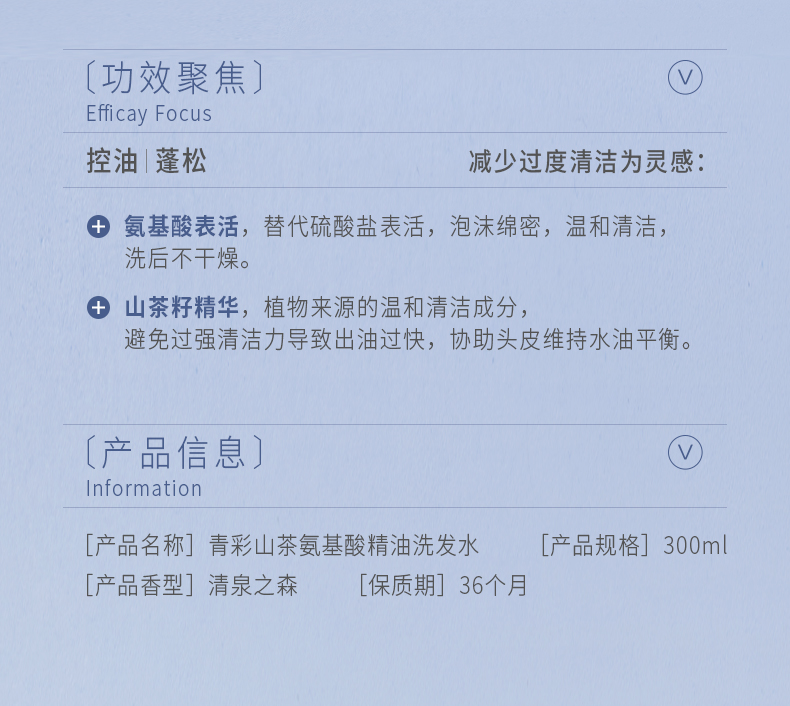 青彩山茶氨基酸精油洗发水 植物精油去屑养头皮控油保湿 300ml/瓶